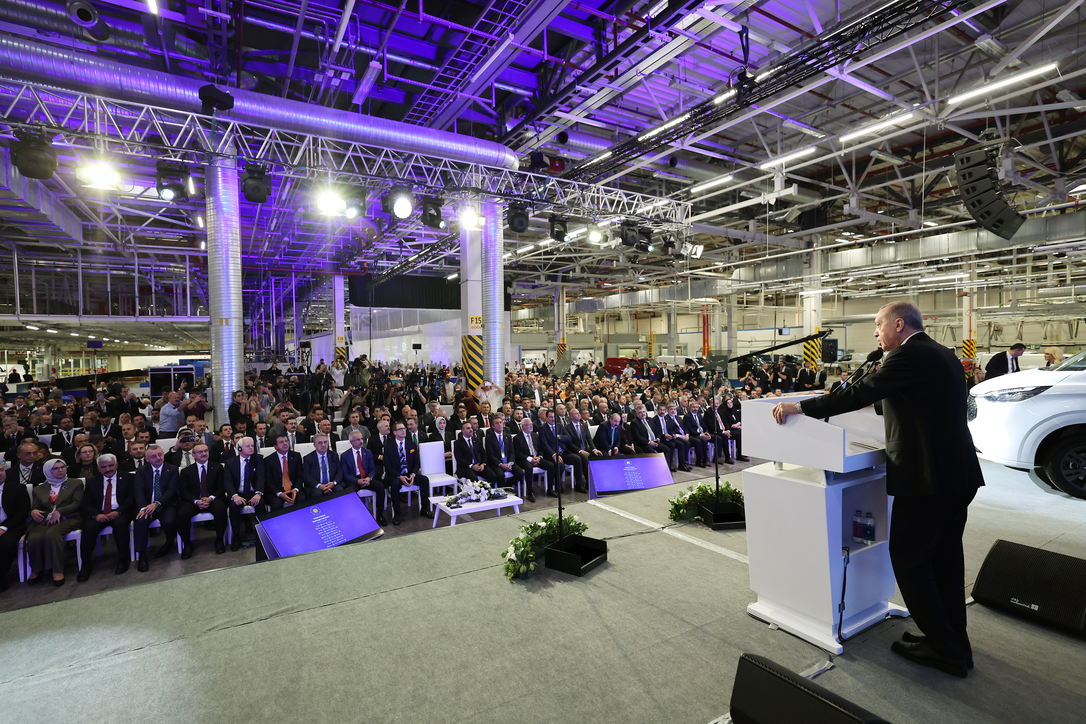 Mevcut firmaların ve yeni aktörlerin piyasaya girişiyle bu alandaki rekabetin giderek kızışacağının anlaşıldığını belirten Cumhurbaşkanı Erdoğan, "Türkiye olarak biz de Togg'un yollara çıkışının tetiklediği ilgiyle, hızla gelişen bir elektrikli araç piyasasına sahip olma yolunda ilerliyoruz." ifadesini kullandı.