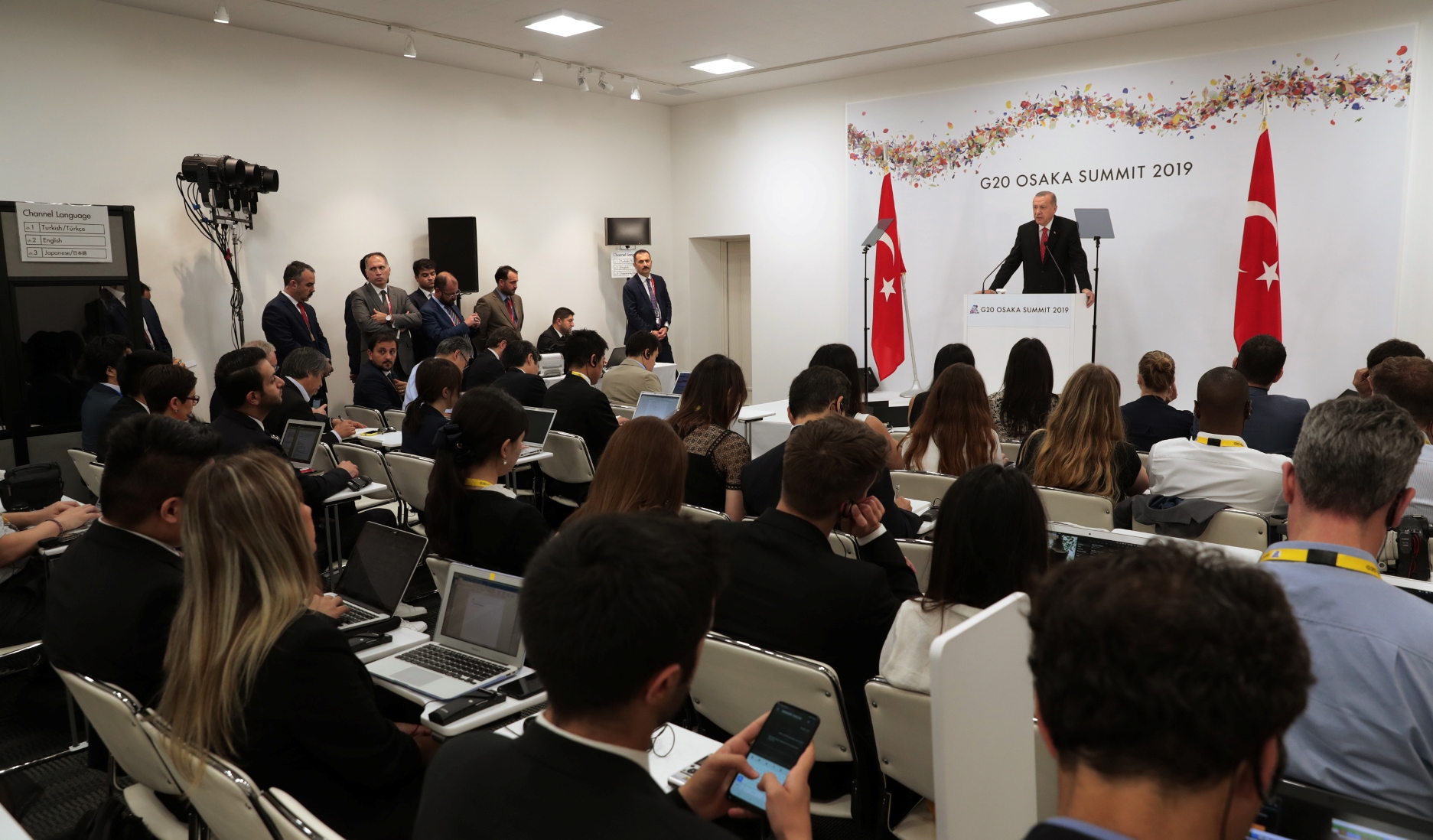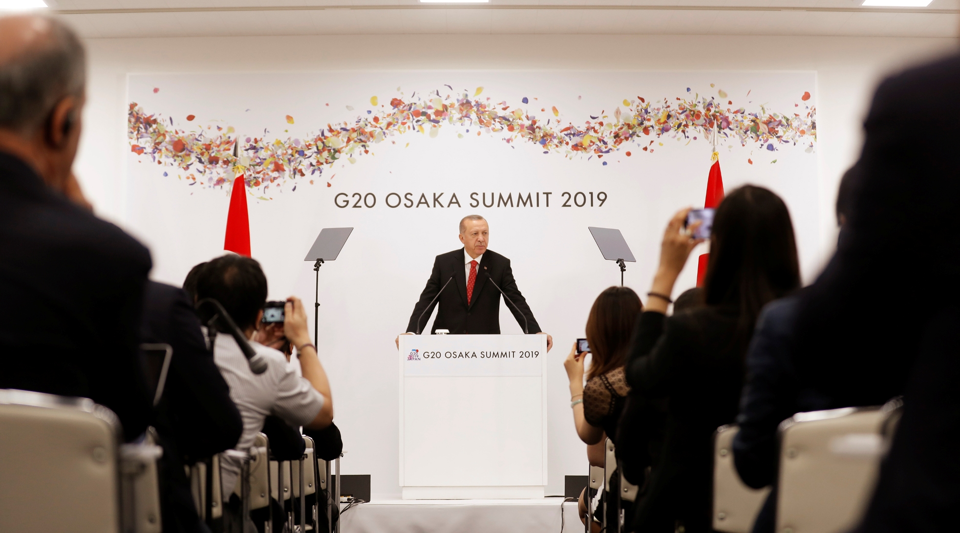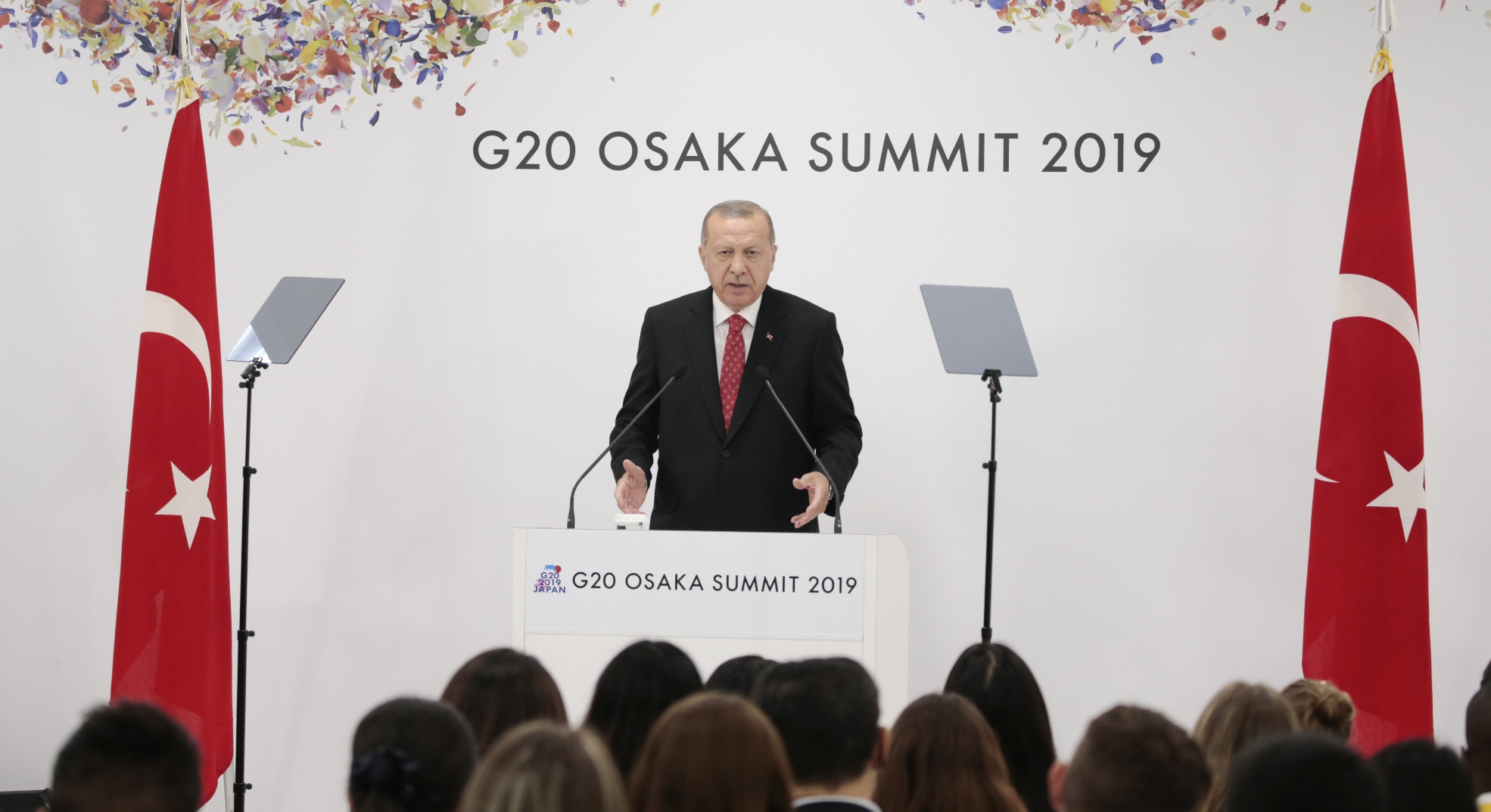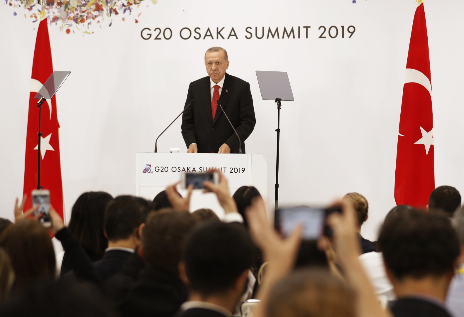 Erdoğan, G20 Liderler Zirvesi'nin yapıldığı INTEX Osaka Fuar Merkezi'nde basın toplantısı düzenledi ve gazetecilerin gündeme ilişkin sorularını yanıtladı.