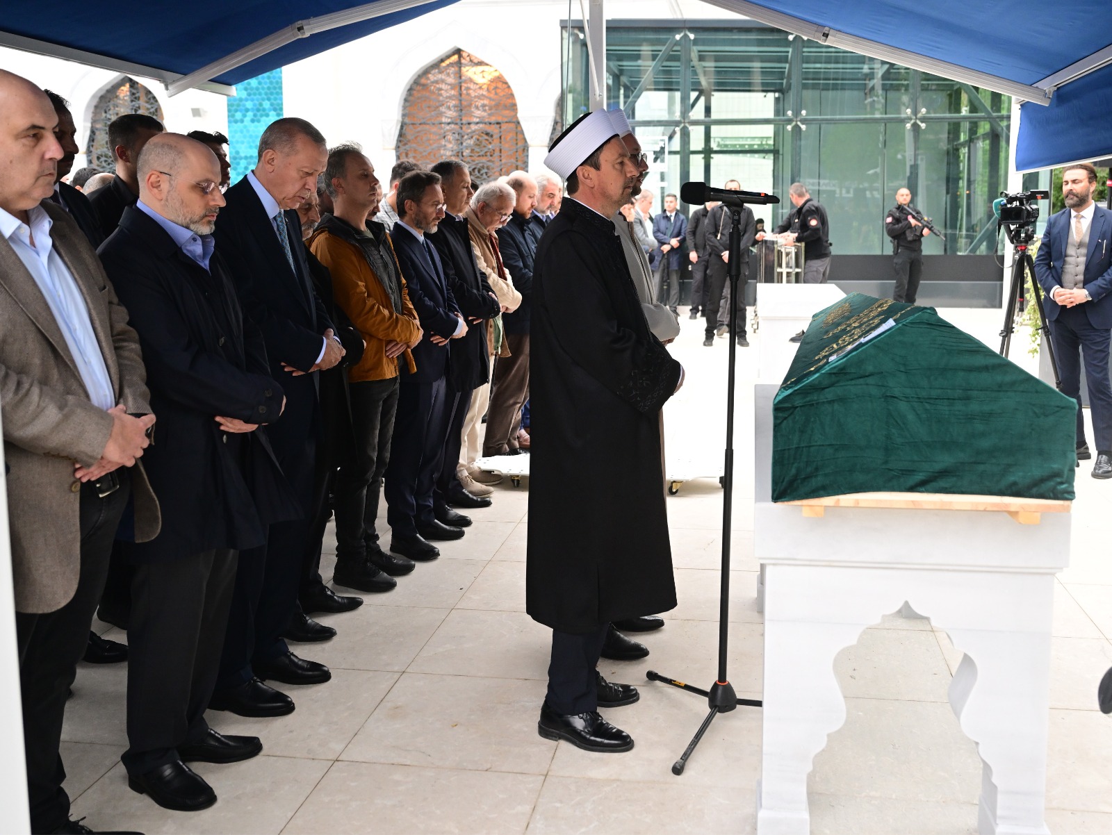 Cumhurbaşkanı Erdoğan'ın yanı sıra Cumhurbaşkanlığı İletişim Başkanı Fahrettin Altun, İstanbul Valisi Ali Yerlikaya, İstanbul İl Emniyet Müdürü Zafer Aktaş, AK Parti İstanbul İl Başkanı Osman Nuri Kabaktepe, İlim Yayma Vakfı Mütevelli Heyeti Başkanı Necmeddin Bilal Erdoğan, merhumun ailesi, yakınları ve meslektaşları da cenaze namazında saf tuttu.