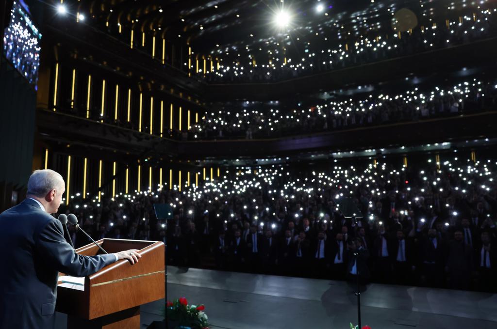 Şimdi bunu Türkiye Yüzyılı şiarıyla yeni bir safhaya taşıdıklarının altını çizen Cumhurbaşkanı Erdoğan, "Seçimlerden sonra kabinemizi bu vizyona göre oluşturduk. Bakan yardımcılarımızı ve bürokratlarımızı buna göre tayin ettik. Milletvekillerimizi ve parti yönetimimizi buna göre belirledik. Hamlelerimizi bu vizyona ulaşma hedefiyle planladık. Ne yapıyorsak Türkiye Yüzyılı'nın hayata geçirilmesi için yapıyor, tüm adımlarımızı buna göre yapıyoruz." ifadelerini kullandı.
