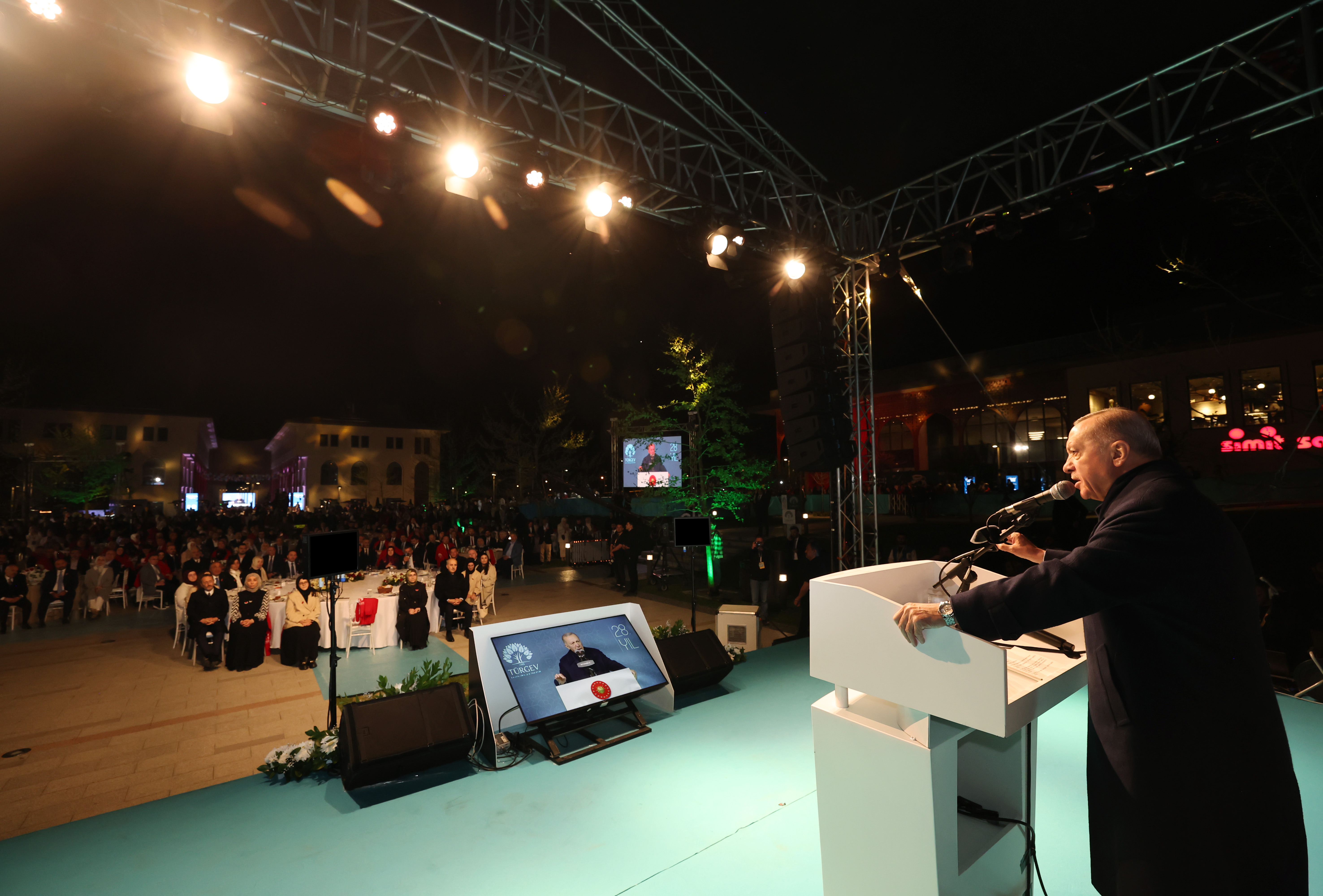 Katılımcıların ramazan-ı şerifini ve Kadir Gecesi'ni tebrik eden Cumhurbaşkanı Erdoğan, "Artık 11 ayın sultanı olan mübarek ramazanı uğurlamaya hazırlanıyoruz. Bir tarafta rahmet, şefkat ve bereket ayına veda etmenin hüznünü, diğer tarafta ise bayrama kavuşacak olmanın sevincini yaşıyoruz. Rabbimden bizleri daha nice ramazanlara, nice Kadir Gecelerine, nice bayramlara hayırla, sağlıkla, huzurla, esenlikle eriştirmesini diliyorum." ifadesini kullandı.