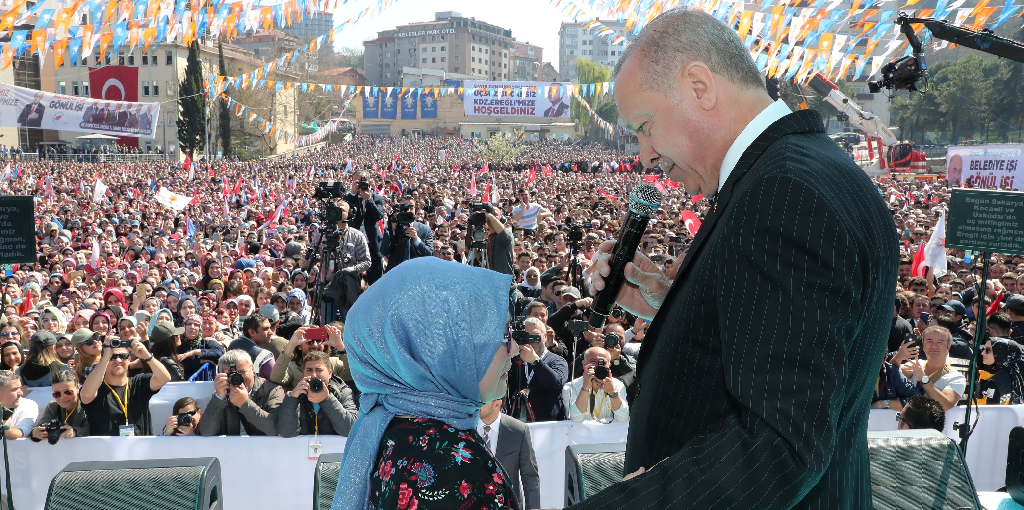 Erdoğan, alandakilere "Ereğli 31 Mart'ta hizmet siyasetine sahip çıkıyor muyuz, gönül belediyeciliğine sahip çıkıyor muyuz, tevazu, samimiyet ve gayretle memleket işi gönül işi diyor muyuz, şehrinin ve ülkenin geleceğine sahip çıkıyor muyuz." sorularını yöneltti. Alandakilerin hep bir ağızdan "Evet" yanıtı vermesi üzerine Erdoğan, "Maşallah" karşılığını verdi.