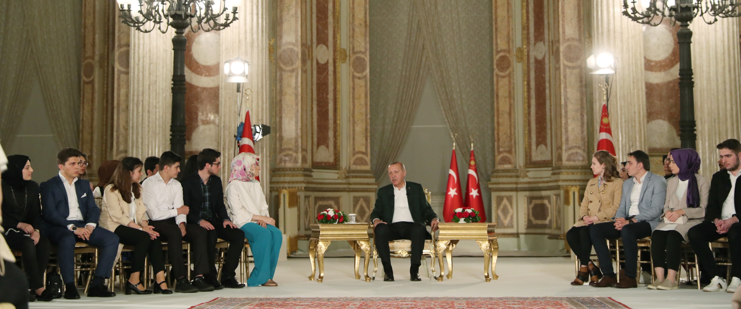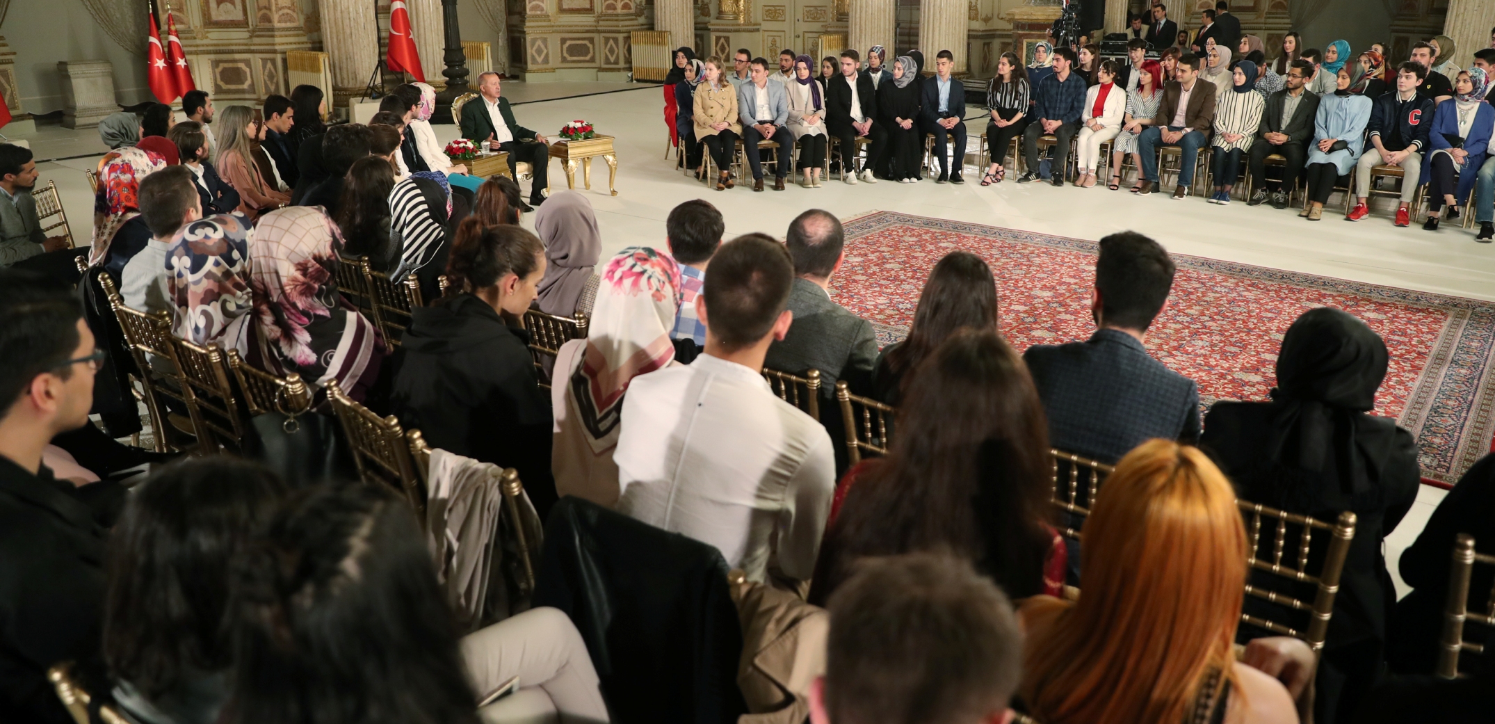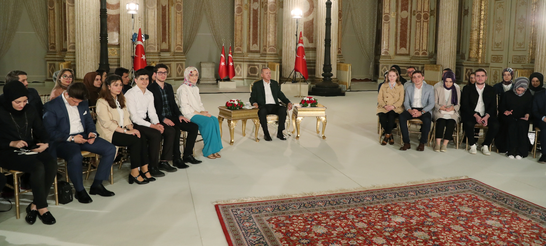 Cumhurbaşkanı Erdoğan, Dolmabahçe Sarayı Muayede Salonu'nda gençlerle iftarda bir araya geldi. Erdoğan, iftar sonrasında gençlerle söyleşi gerçekleştirdi.
