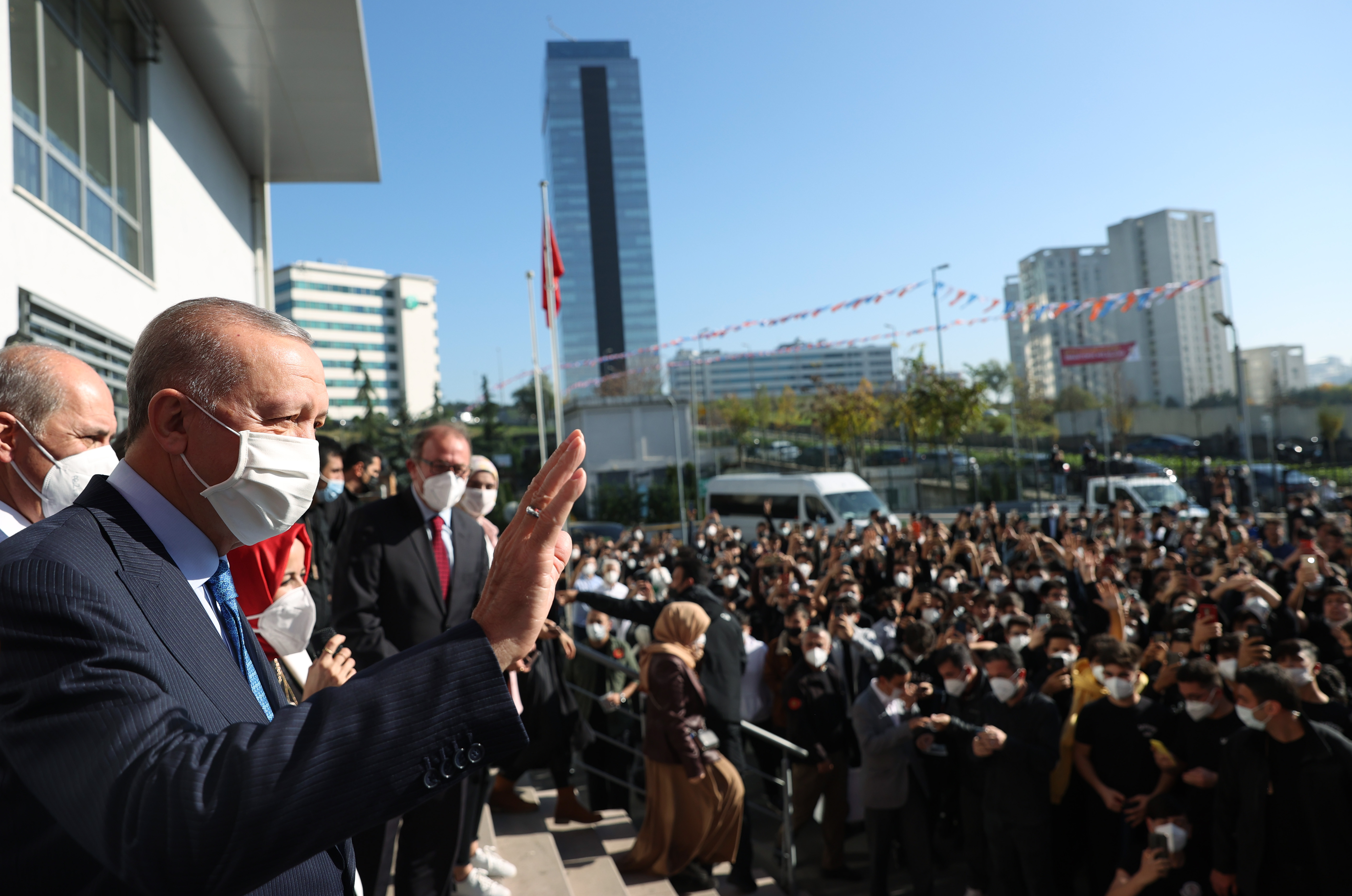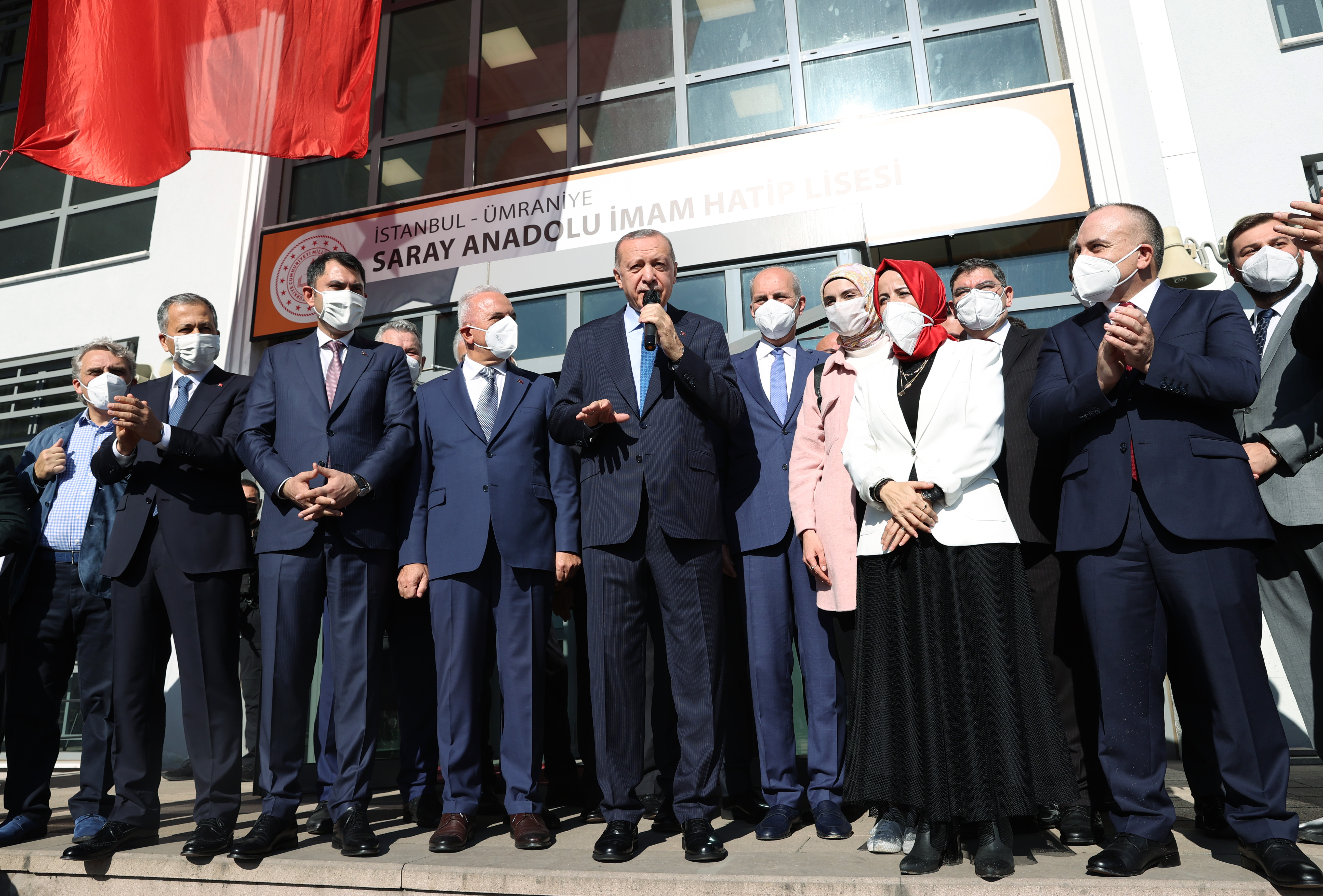 Cuma namazını Ümraniye'deki Hacı Nusret Yıldırım Camisi'nde kılan Cumhurbaşkanı Erdoğan, buradan ayrılırken kendisine sevgi gösterisinde bulunan öğrencilerin eğitim gördüğü Saray Anadolu İmam Hatip Lisesi'ni ziyaret etti.