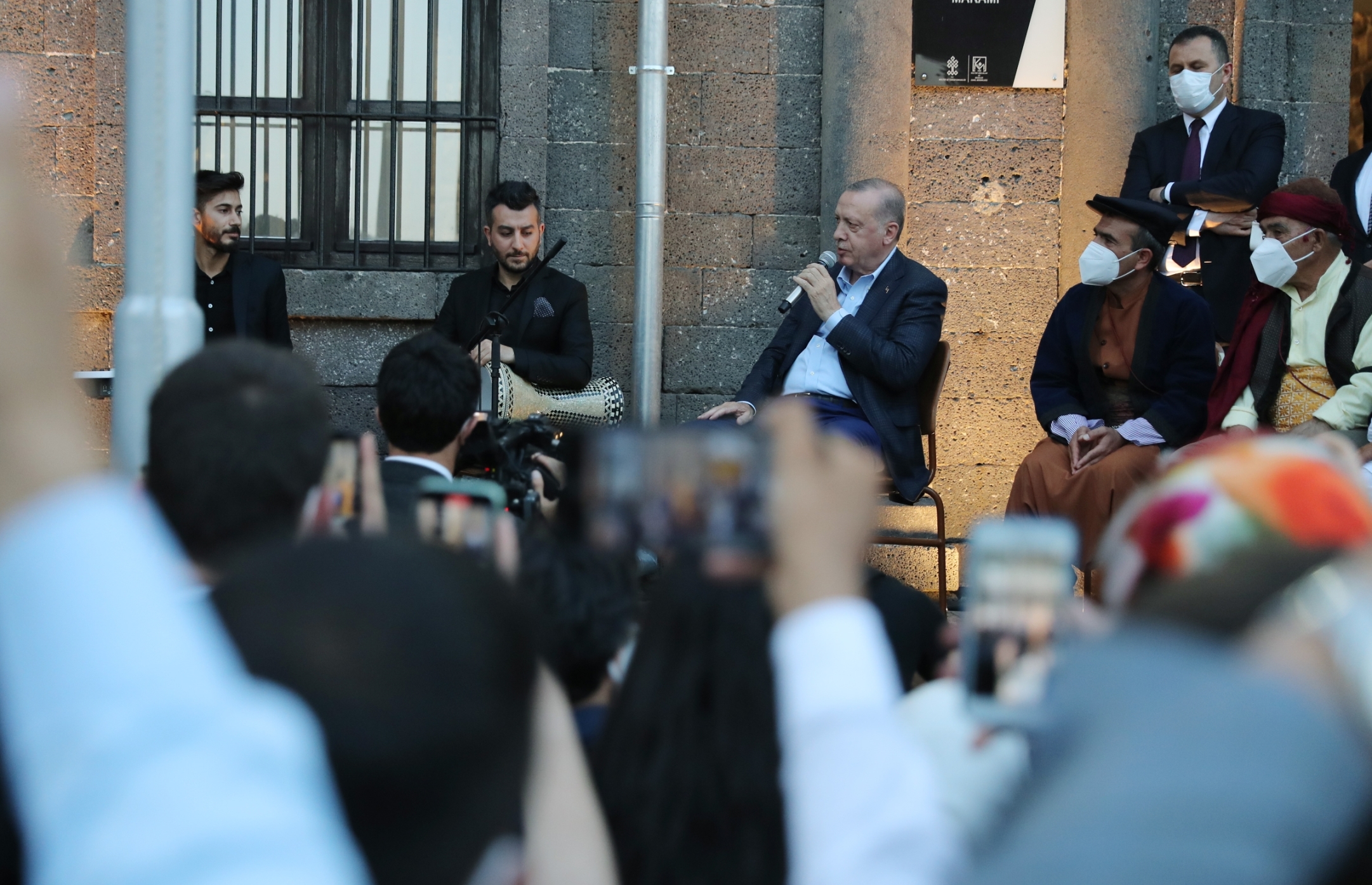 Gençlerle bir süre sohbet eden Cumhurbaşkanı Erdoğan, bazı gençlerin ve sanatçıların seslendirdikleri yöresel türküleri dinledi. Programda Cumhurbaşkanlığı Başdanışmanı Gülşen Orhan da Türkçe ve Kürtçe türkü söyledi.
