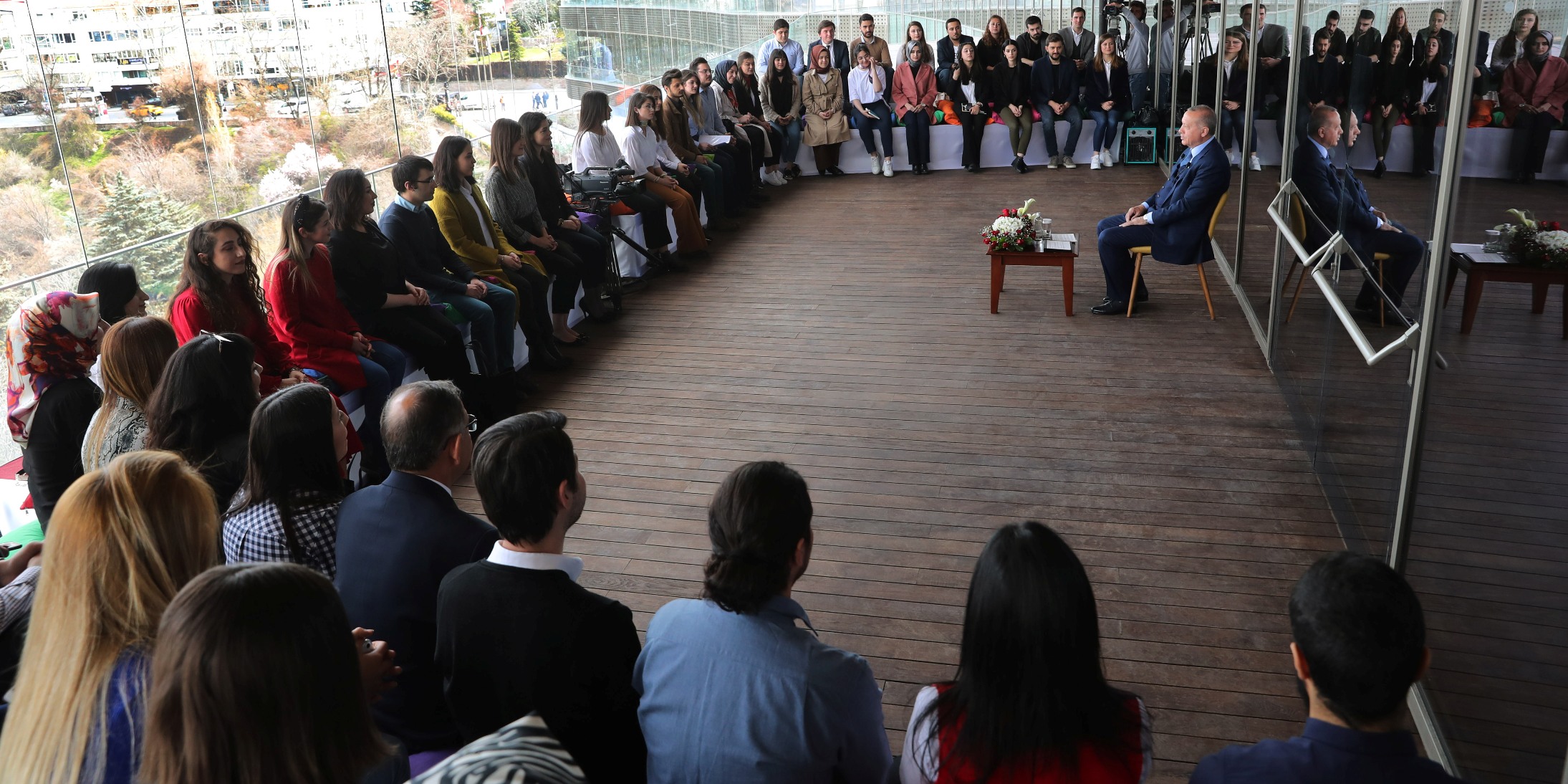 Cumhurbaşkanı ve AK Parti Genel Başkanı Recep Tayyip Erdoğan, Atakule'de buluştuğu gençlerin sorularını yanıtladı. Program, Twitter, Facebook ve Instagram gibi sosyal medya hesaplarından canlı yayımlandı.