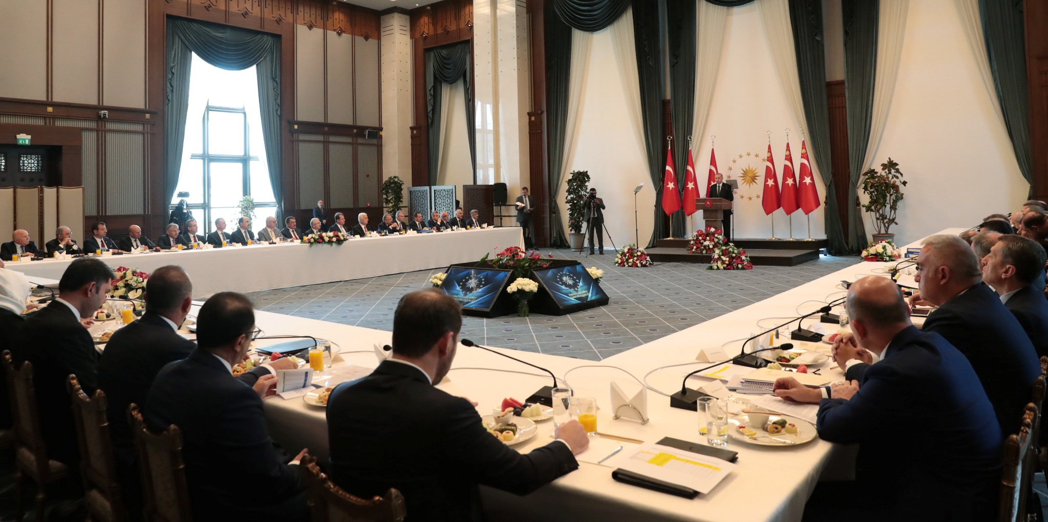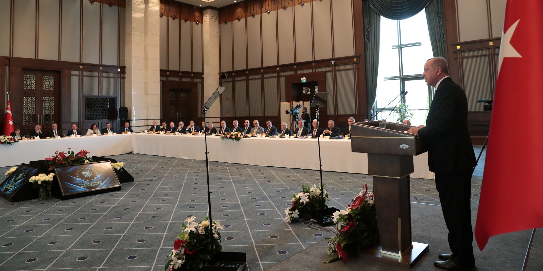 Cumhurbaşkanı Recep Tayyip Erdoğan, Cumhurbaşkanlığı Külliyesi'nde düzenlenen Büyükşehir Belediye Başkanları Toplantısı'nda konuştu.