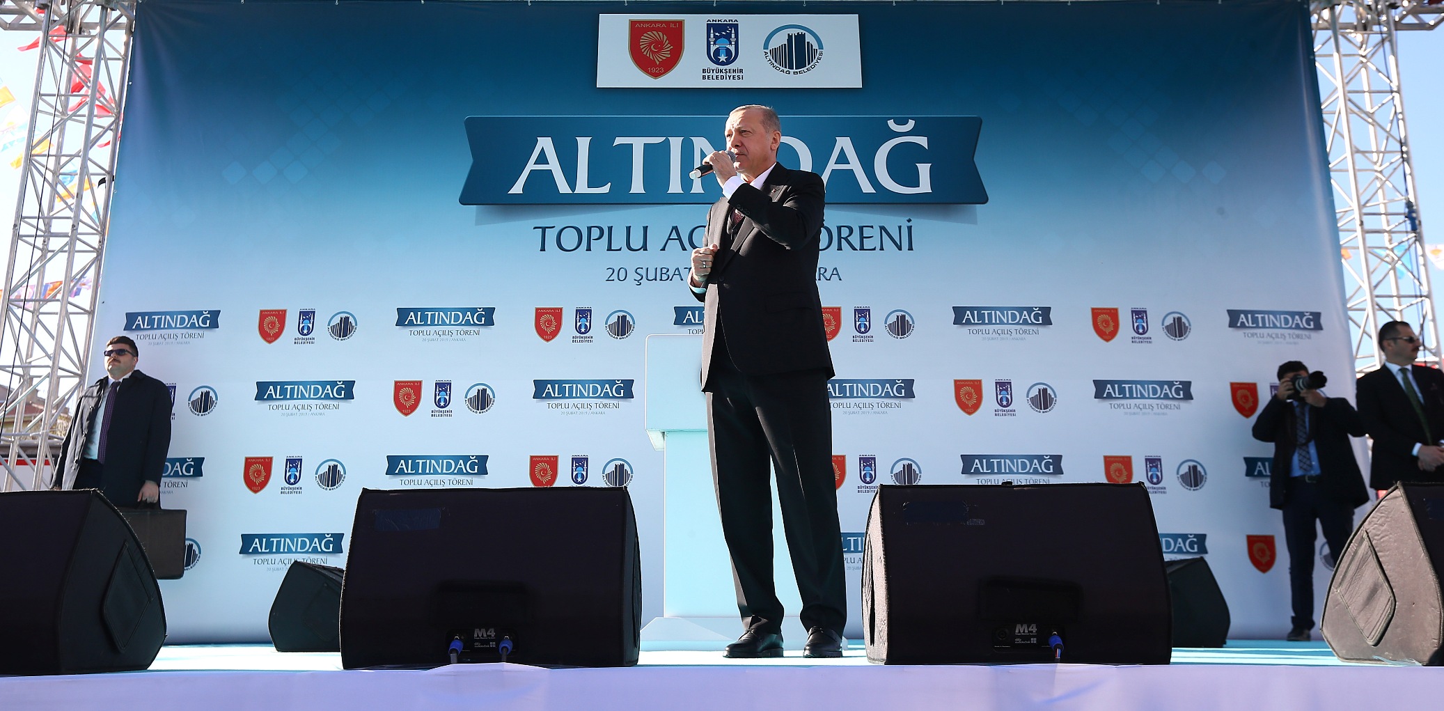 Cumhurbaşkanı Erdoğan, açılışa katılanlara yönelttiği "Altındağ, 31 Mart'ta ülkene sahip çıkıyor musun? Altındağ, 31 Mart'ta sandığı, demokrasiye ve milli iradeye sahip çıkıyor musun? Altındağ, 31 Mart'ta istiklaline ve istikbaline sahip çıkıyor musun? Altındağ, 31 Mart'ta, tevazu, samimiyet ve gayretle 'memleket işi gönül işi' diyor musun? Altındağ, 31 Mart'ta gönül belediyeciliğine 'Evet' diyor musun? Altındağ, 31 Mart'ta Cumhur İttifakı'na 'Evet' diyor musun?" sorulara, "Evet" yanıtını aldı.