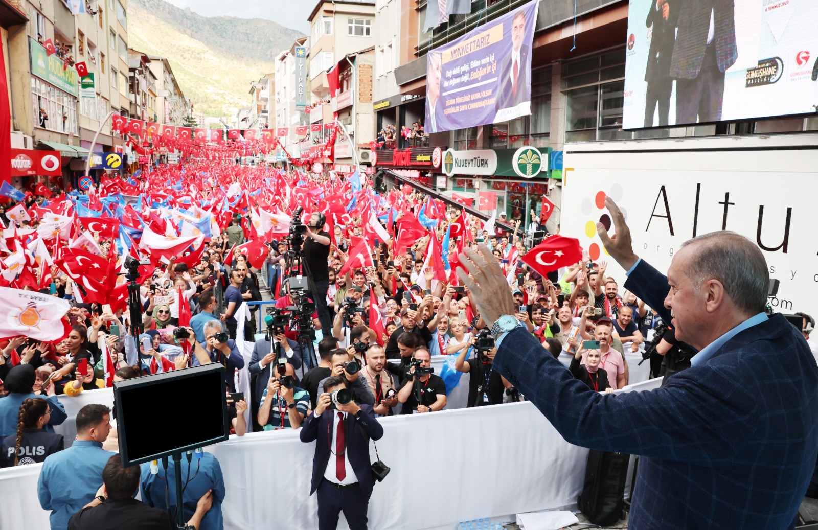 Cumhurbaşkanı Erdoğan, 14-28 Mayıs'taki seçimlerde kendisine verilen oylarda yüzde 78,54 ile ikinci olan Gümüşhane'ye gerçekleştirdiği "teşekkür ziyareti"nde vatandaşların sevgi gösterileriyle karşılandı.