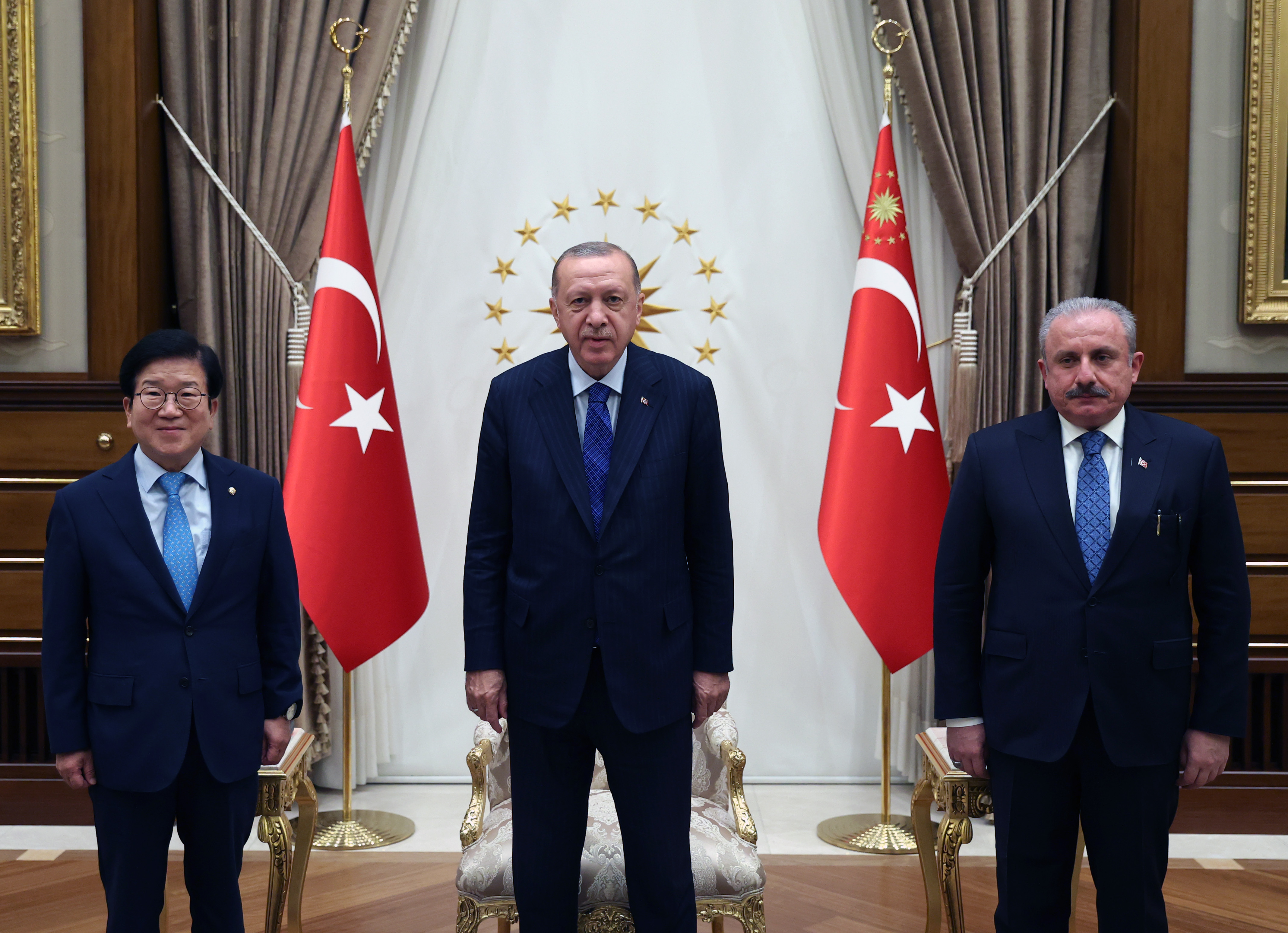 Cumhurbaşkanı Recep Tayyip Erdoğan, Güney Kore Meclis Başkanı Park Byeong-seug'u Cumhurbaşkanlığı Külliyesi'nde kabul etti. Kabulde, TBMM Başkanı Mustafa Şentop da hazır bulundu.