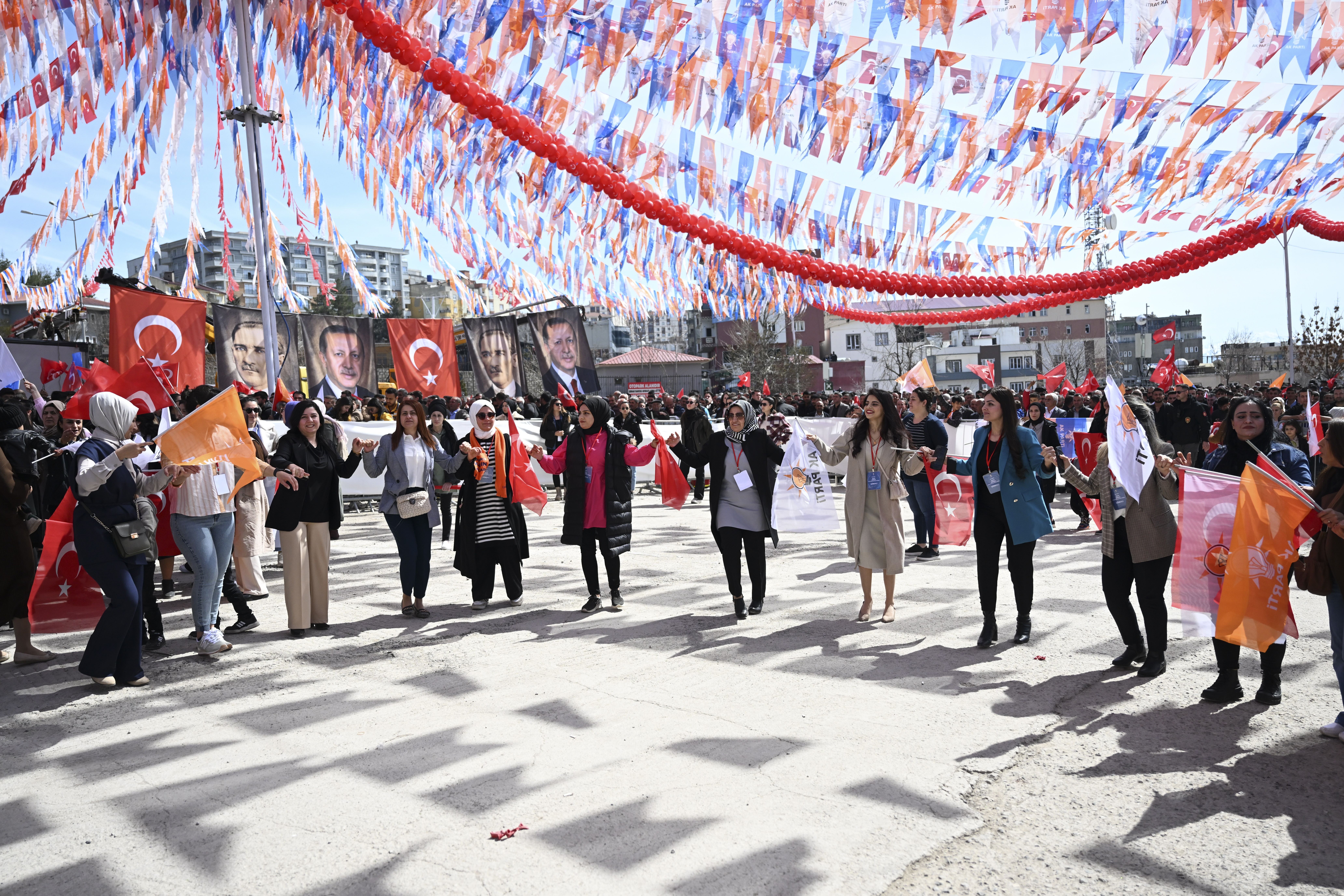 Miting alanında, "Babalar sözünü tutar dedin, tuttuğun sözler dünyadan uzaya yol oldu", "Türkiye bilir, gerçek belediyecilik AK Parti'dir" yazılı Türkçe ve Kürtçe pankartlar yer aldı.