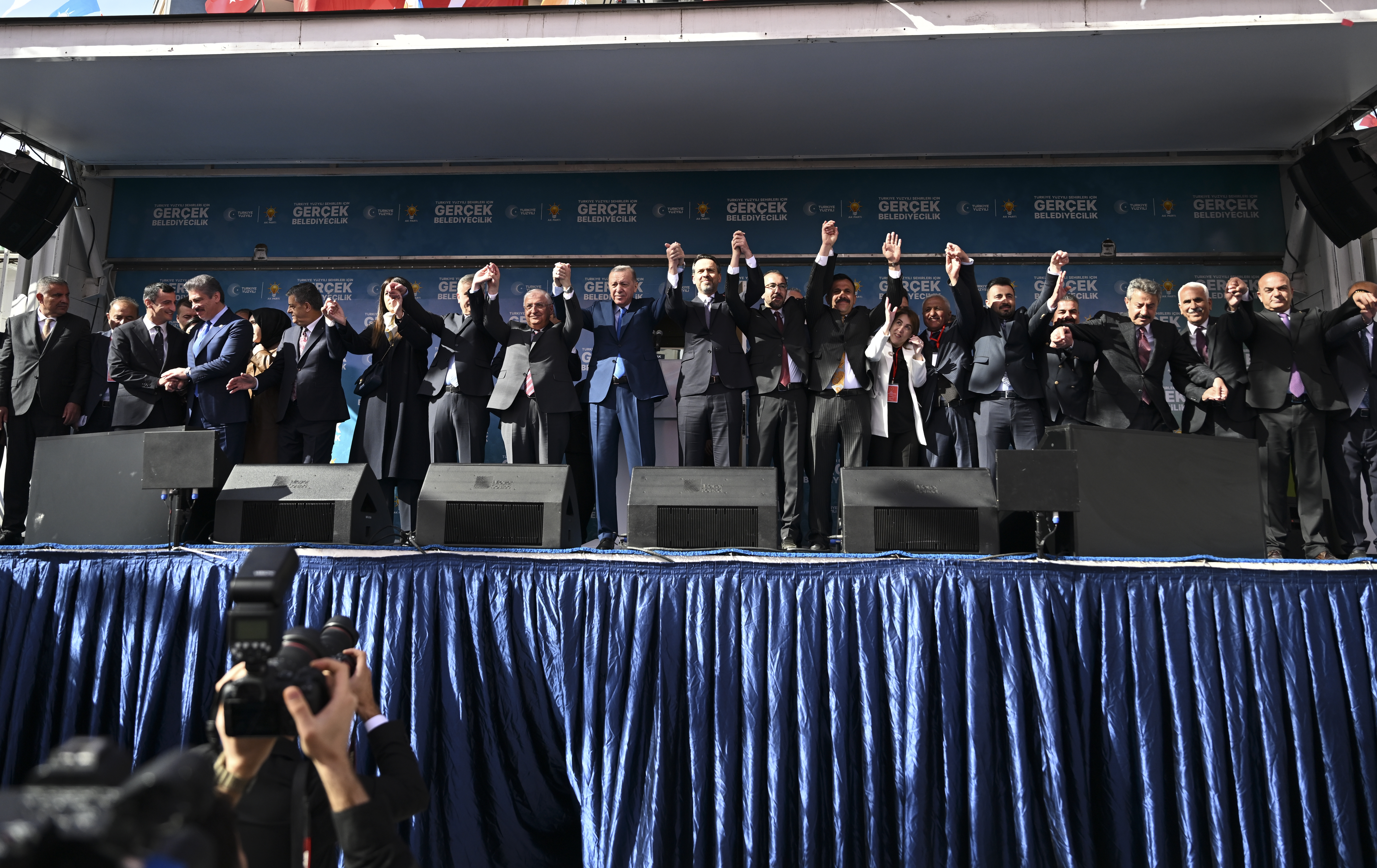 Konuşmasının ardından Cumhurbaşkanı Erdoğan, AK Parti'nin Şırnak ve ilçe belediye başkan adaylarını sahneye çağırarak tanıttı.