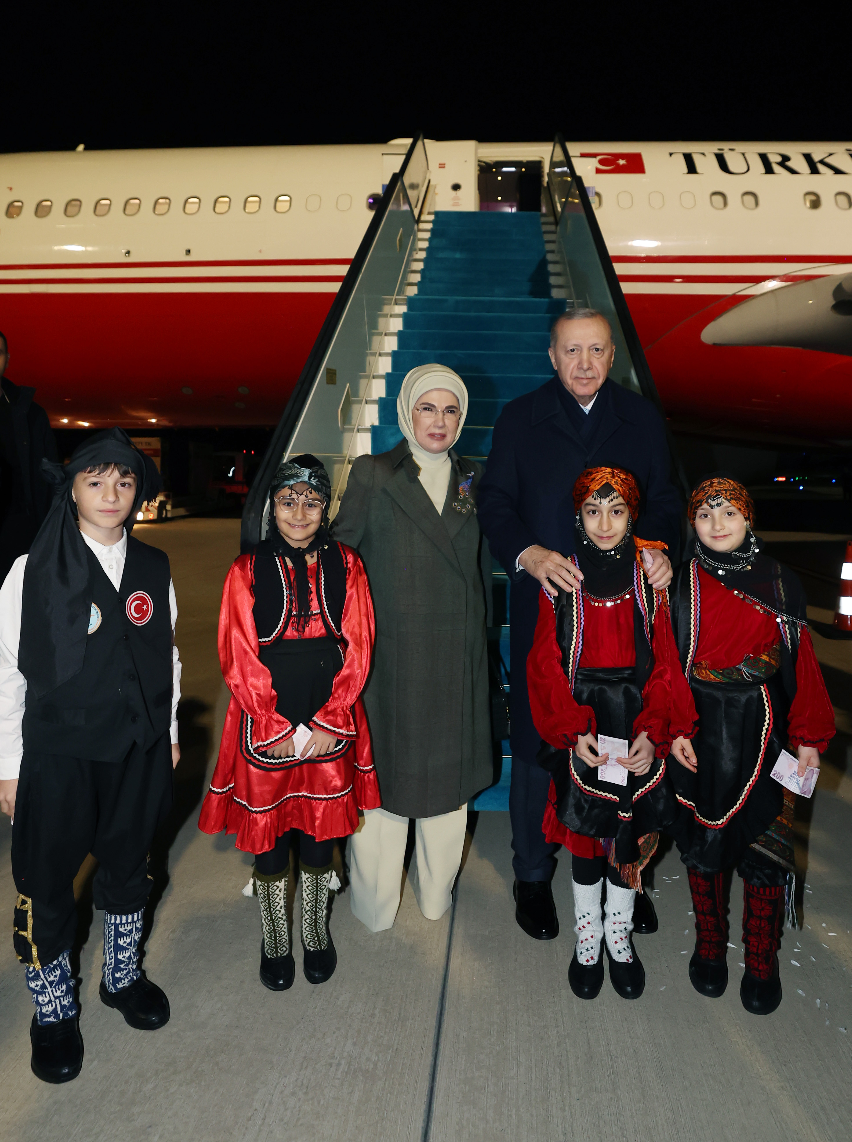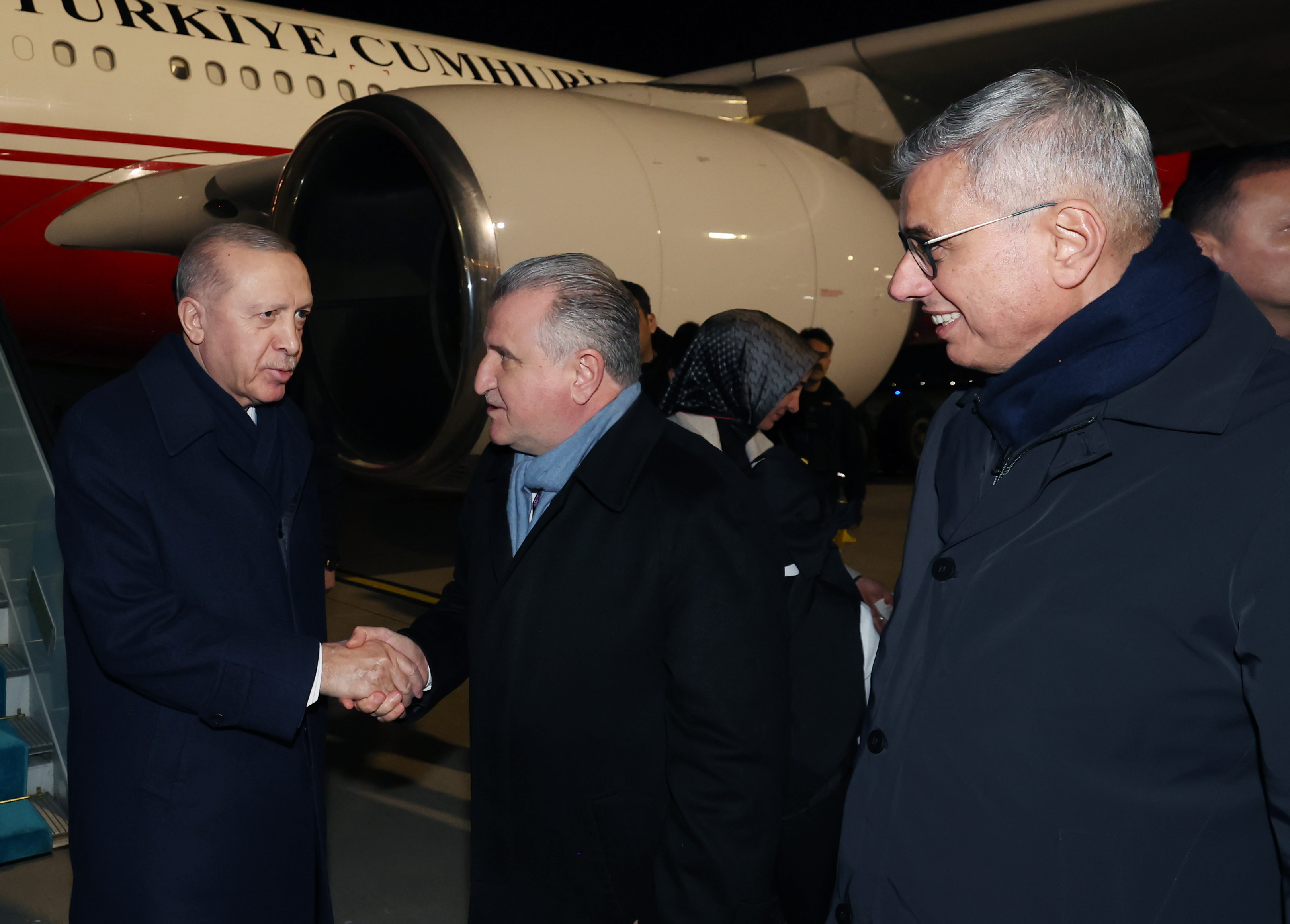Merkez Camisi önünde kendisini bekleyen hemşehrilerini eşi Emine Erdoğan ile selamlayan Cumhurbaşkanı Erdoğan, makam aracından inerek, otobüse geçti.