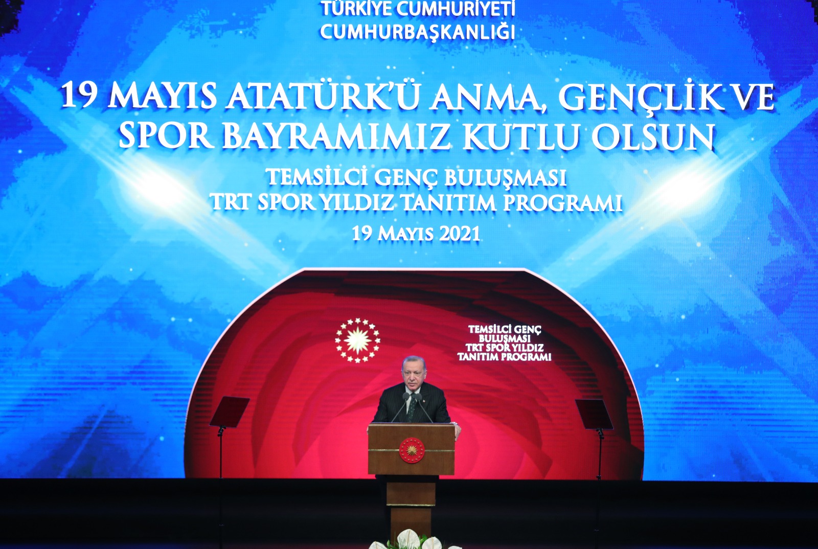 Cumhurbaşkanı Erdoğan, Beştepe Millet Kongre ve Kültür Merkezi'nde, 19 Mayıs Atatürk'ü Anma, Gençlik ve Spor Bayramı dolayısıyla Temsilci Genç Buluşması ve TRT Spor Yıldız Tanıtım Programı'na katıldı.