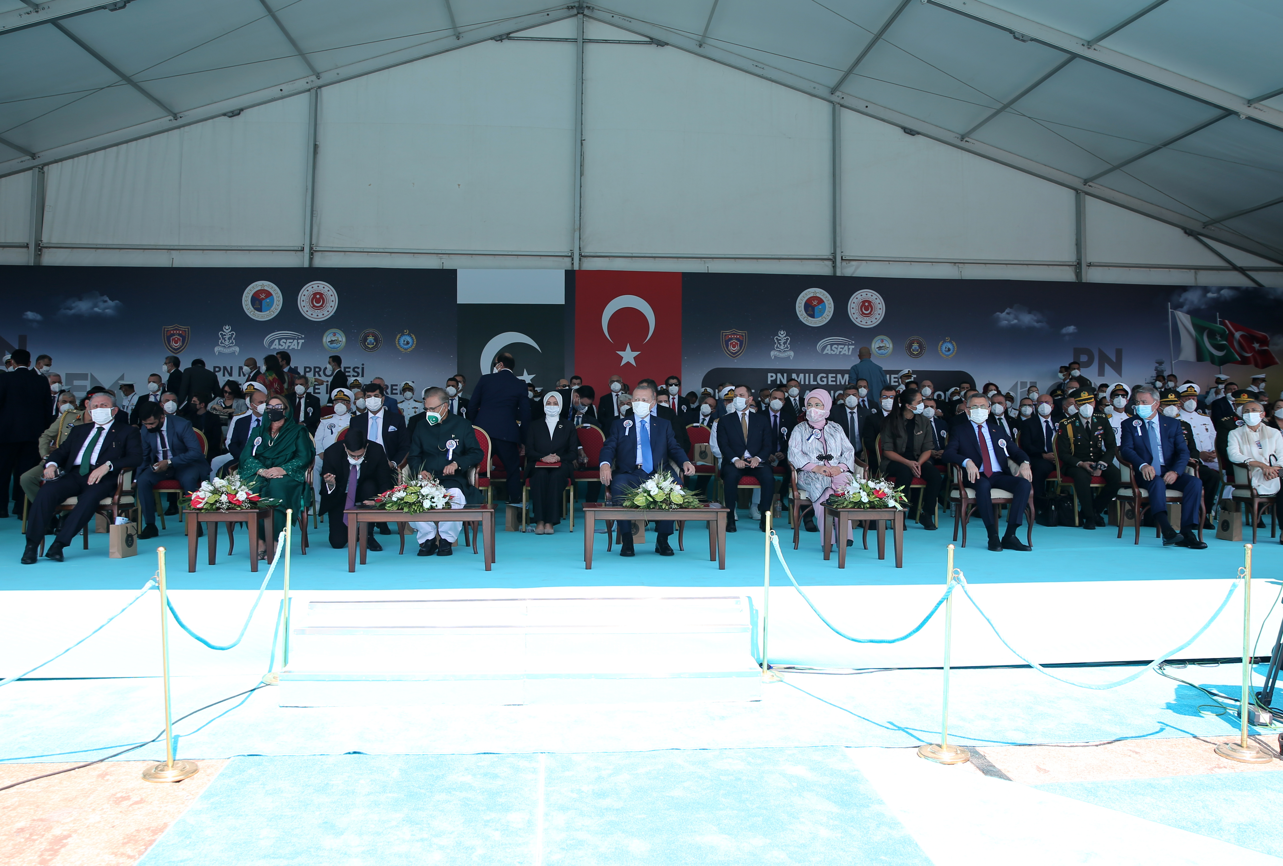 Cumhurbaşkanı Erdoğan, İstanbul Tersane Komutanlığı'nda düzenlenen Pakistan MİLGEM Korvet Projesi 1'inci Gemi Denize İniş ve Açık Deniz Karakol Gemisi Projesi 1'inci Gemi Sac Kesim Töreni'nde yaptığı konuşmasına, dün 74. yıl dönümü olan Pakistan'ın bağımsızlık gününü tebrik ederek başladı.