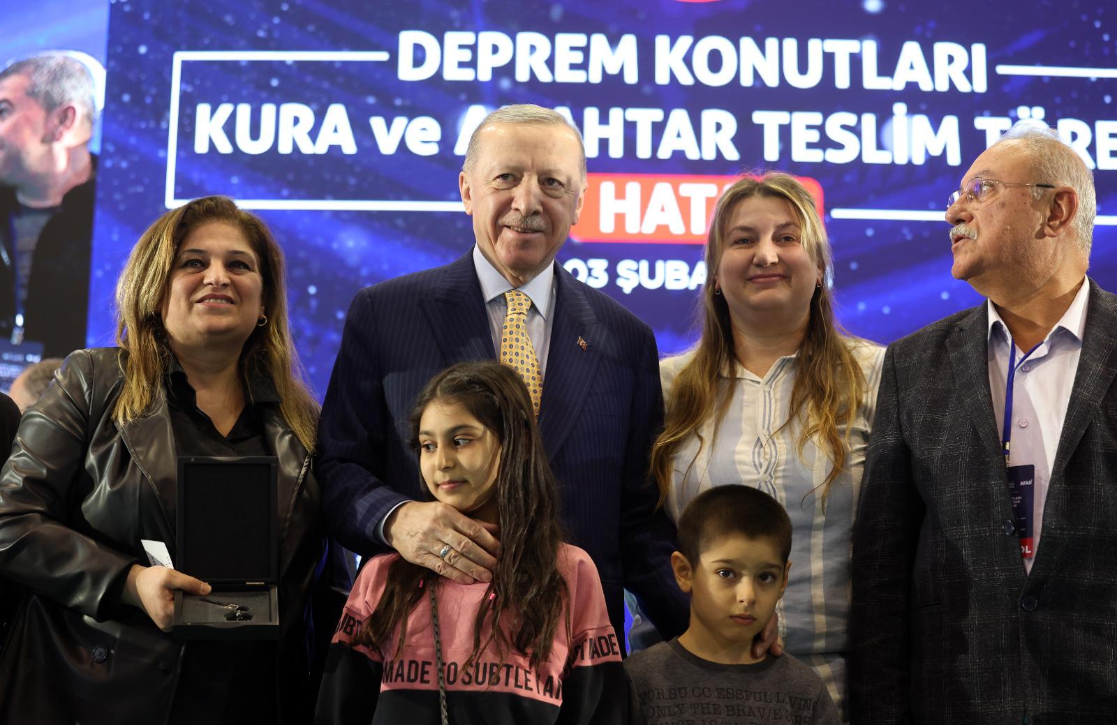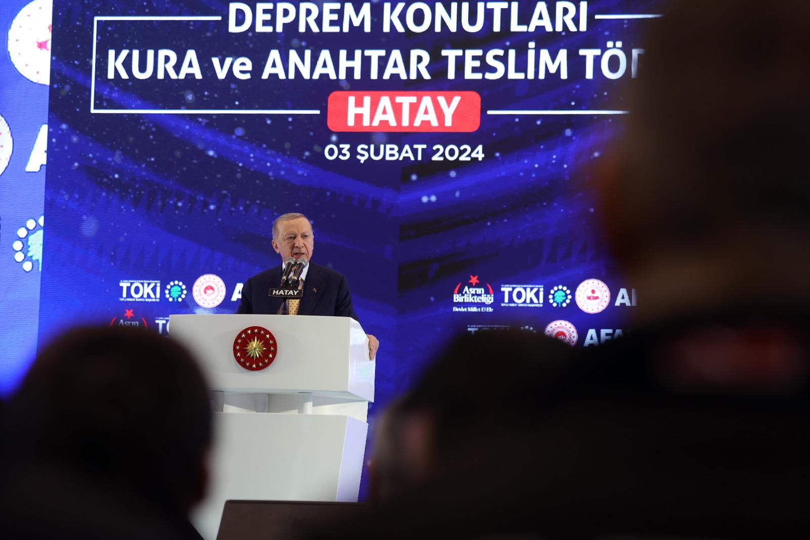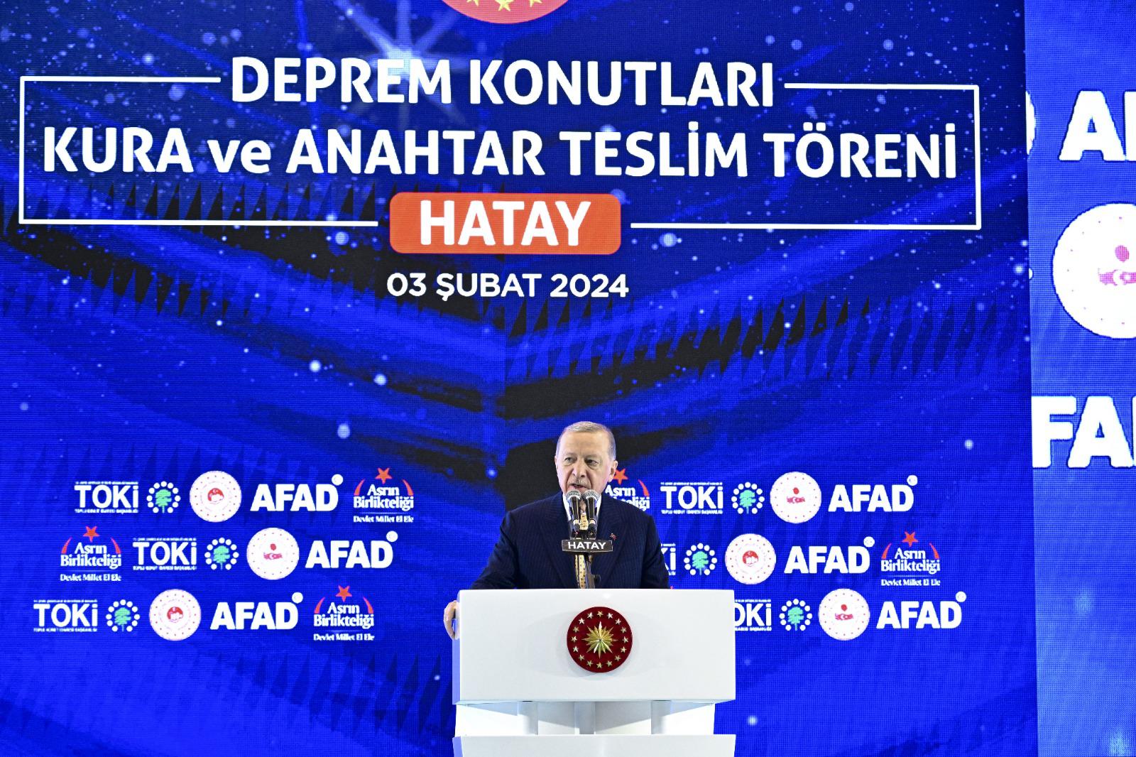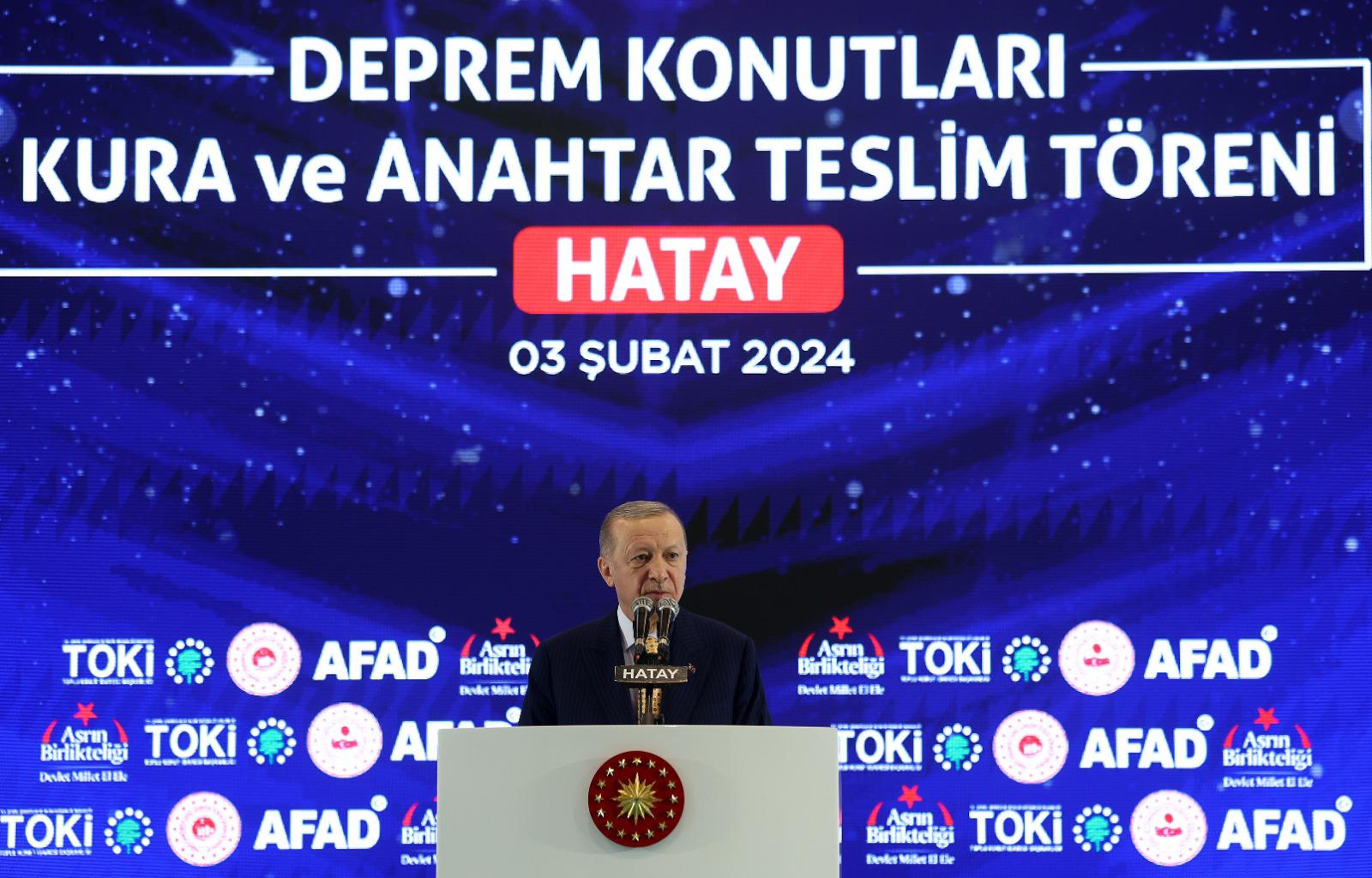 Cumhurbaşkanı Recep Tayyip Erdoğan, Mustafa Kemal Üniversitesi Spor Salonu'nda düzenlenen Deprem Konutları Kura ve Anahtar Teslim Töreni'nde konuştu.