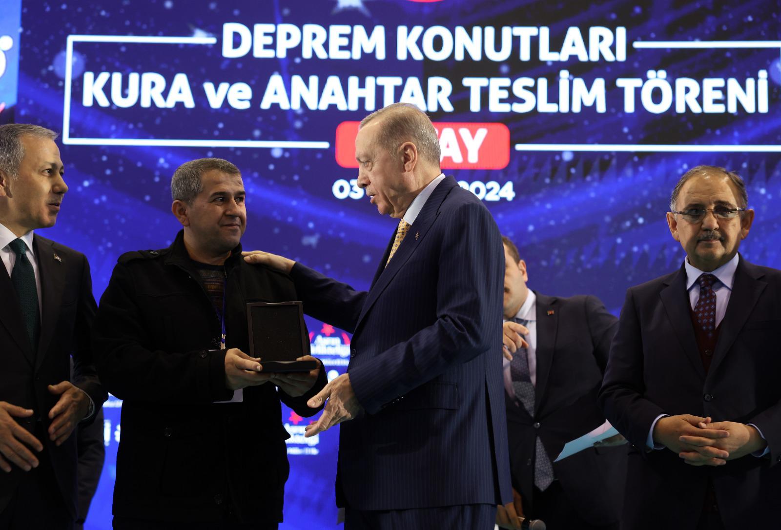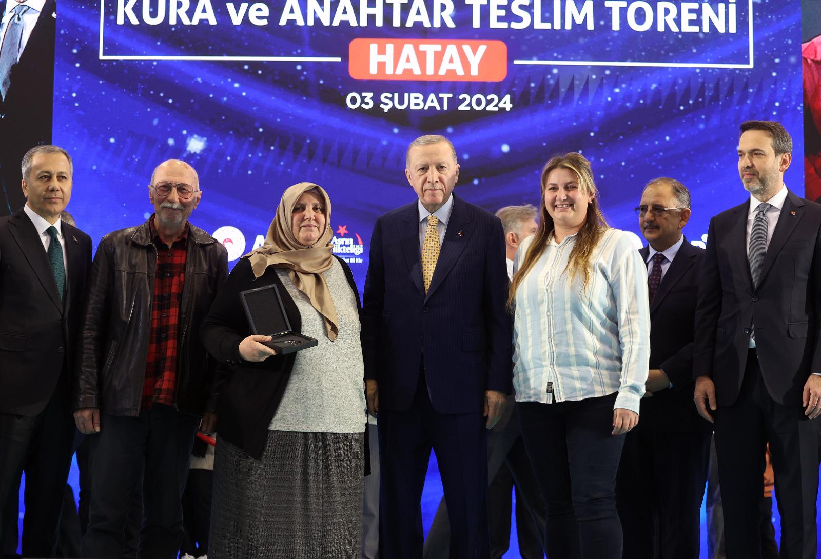 Konuşmanın ardından Cumhurbaşkanı Erdoğan, kurayla belirlenen hak sahiplerine anahtarlarını teslim etti.