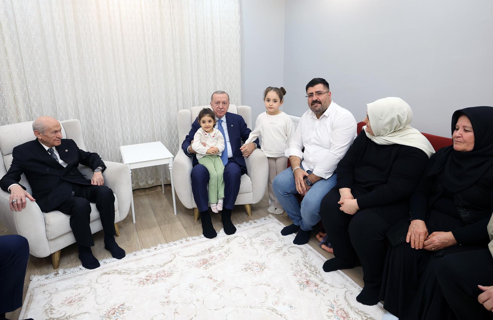 Cumhurbaşkanı Recep Tayyip Erdoğan, Hatay'da depremzede Karakuş ailesini yeni evlerinde ziyaret etti.