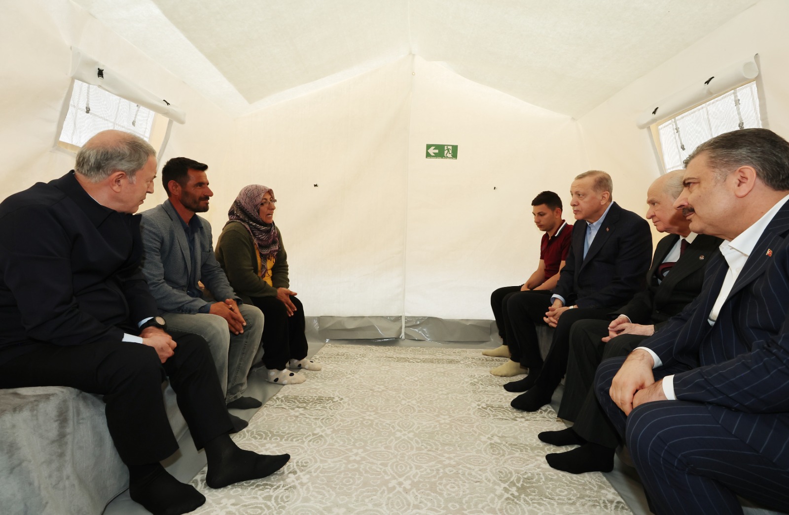 Cumhurbaşkanı Recep Tayyip Erdoğan, MHP Genel Başkanı Devlet Bahçeli ile incelemelerde bulunmak üzere, gittiği, Kahramanmaraş merkezli depremlerden etkilenen Hatay'da yaptığı konuşmada hak sahibi herkesin 3 oda 1 salondan oluşan evlerde güvenli, huzurlu, müreffeh şekilde hayatını sürdürmesini sağlayana kadar mücadeleyi devam ettireceklerini belirtti.