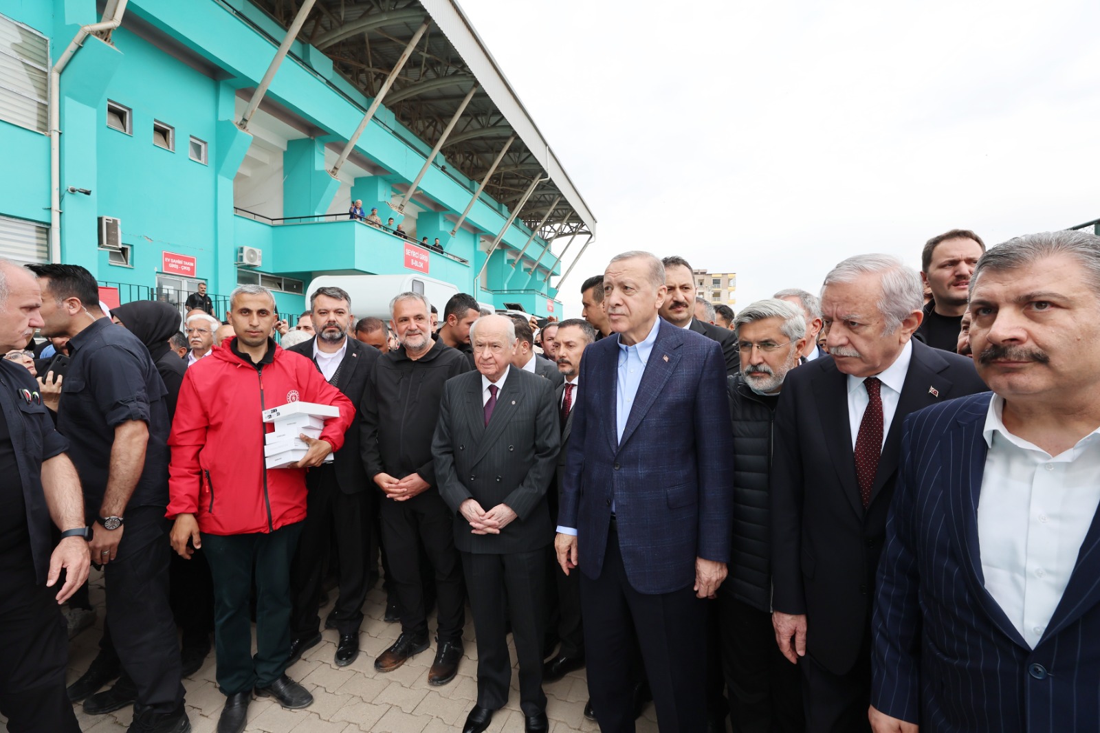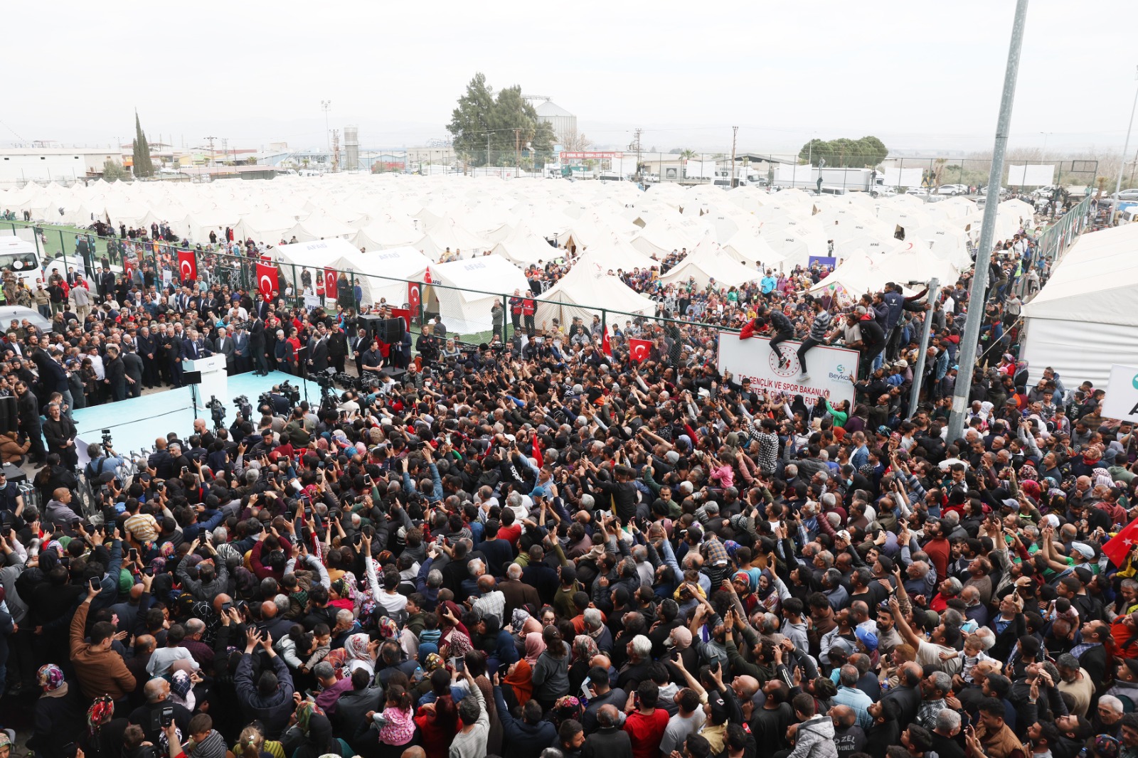 Kırıkhan Stadyumu yanındaki çadır kenti ziyaretinin ardından konuşan Cumhurbaşkanı Erdoğan, Türkiye'de 6 Şubat'ta meydana gelen depremlerin, son asırda maruz kalınan en büyük felaket olarak tarihe geçtiğini vurguladı. Cumhurbaşkanı Erdoğan, depremlerde hayatını kaybeden vatandaşlara Allah'tan rahmet, yakınlarına sabır ve başsağlığı diledi.