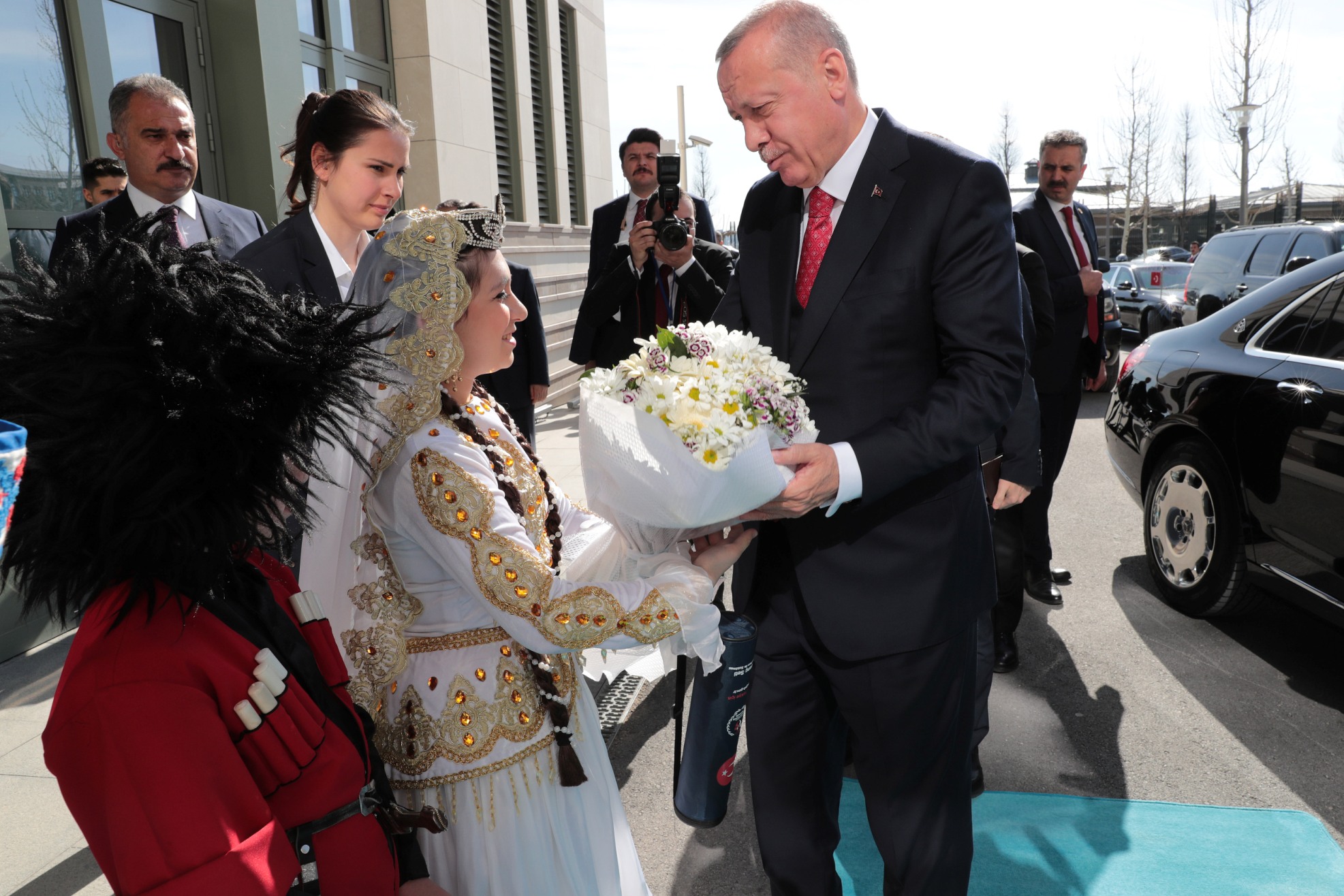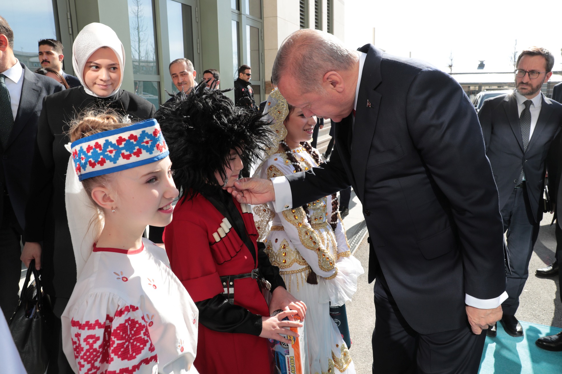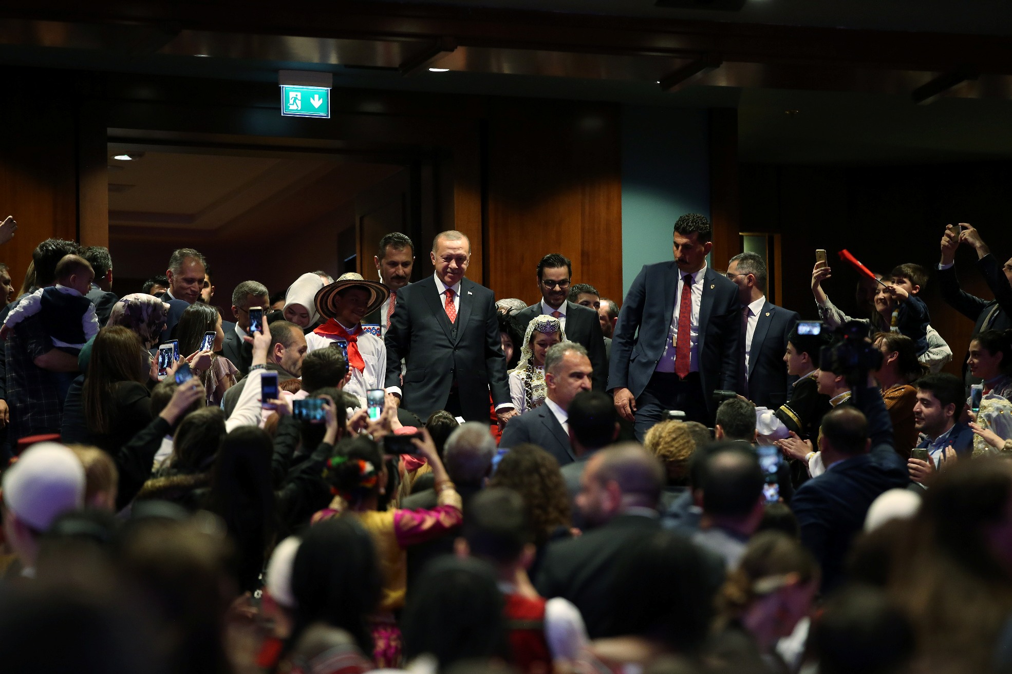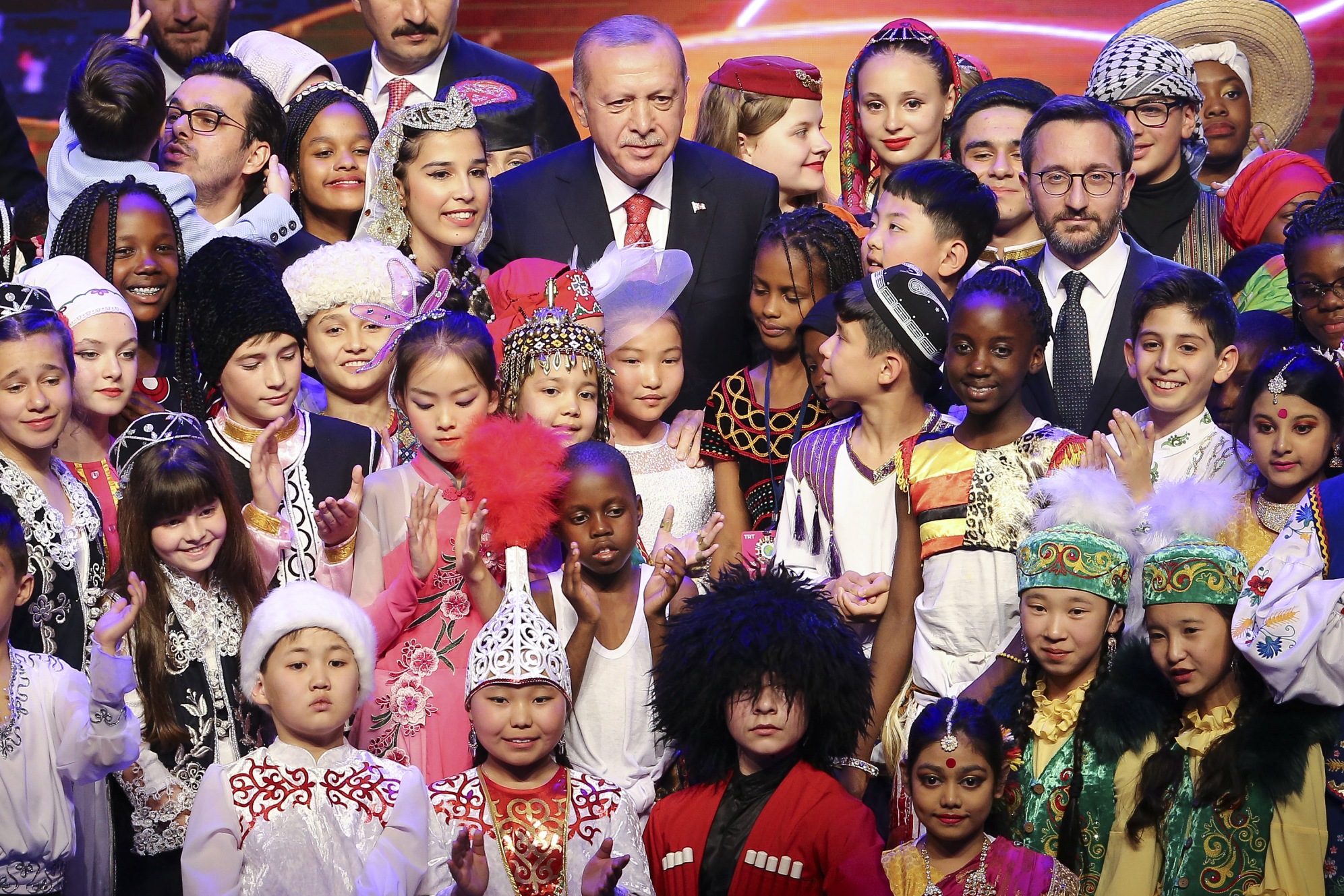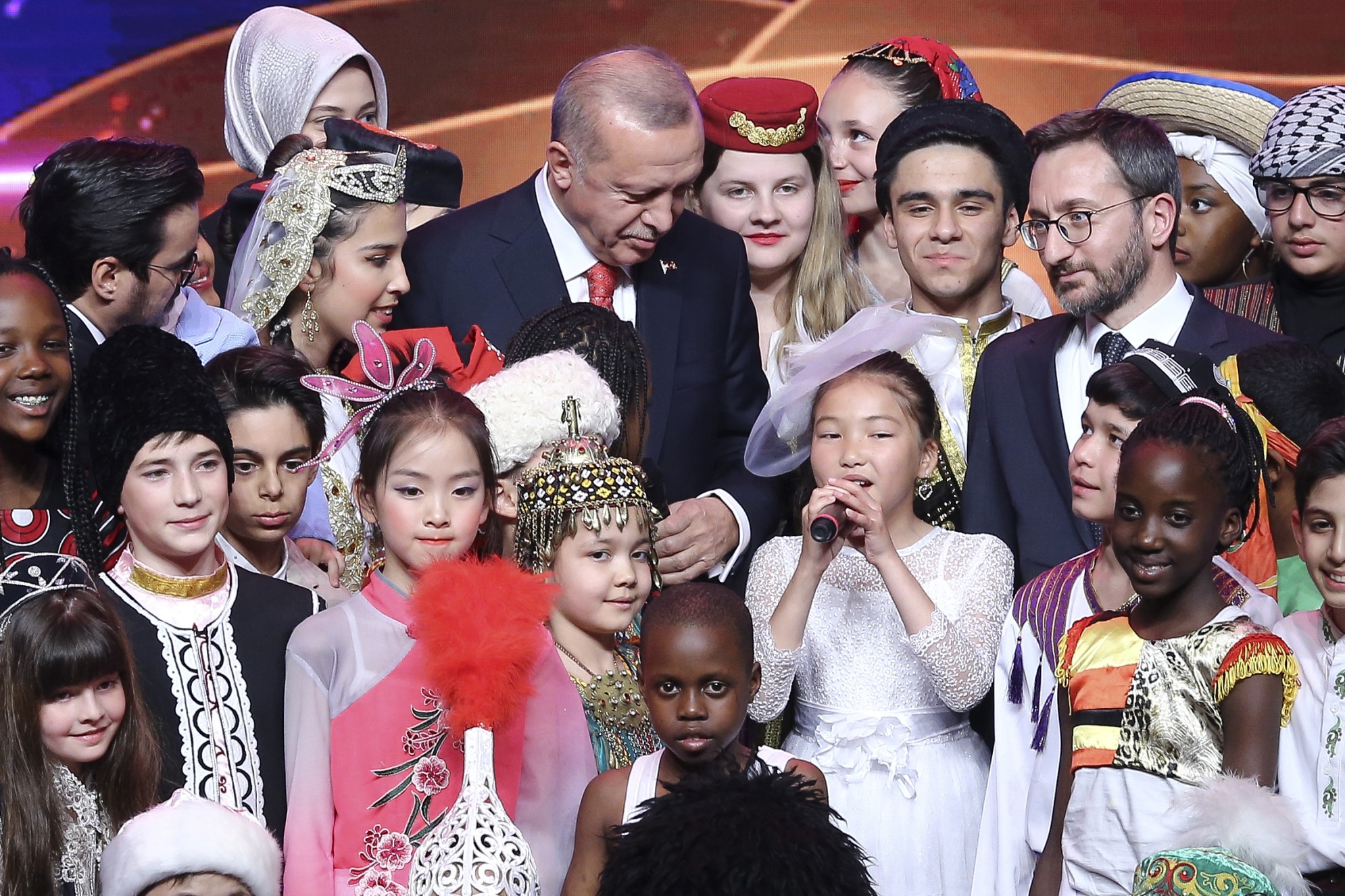 Erdoğan, konuşmasını sürdürürken, gösterilerini sunan çocuklar sahneye geldi. Kendisine "Merhaba" diyen bir çocuğa, "Nasıl gidiyor araba?" karşılığını veren Erdoğan, "Şu anda çok zenginim, zira 40 ülkeden böyle güzel yavrular etrafımızı sarınca fakir olmak mümkün değil, zenginim." ifadesini kullandı.