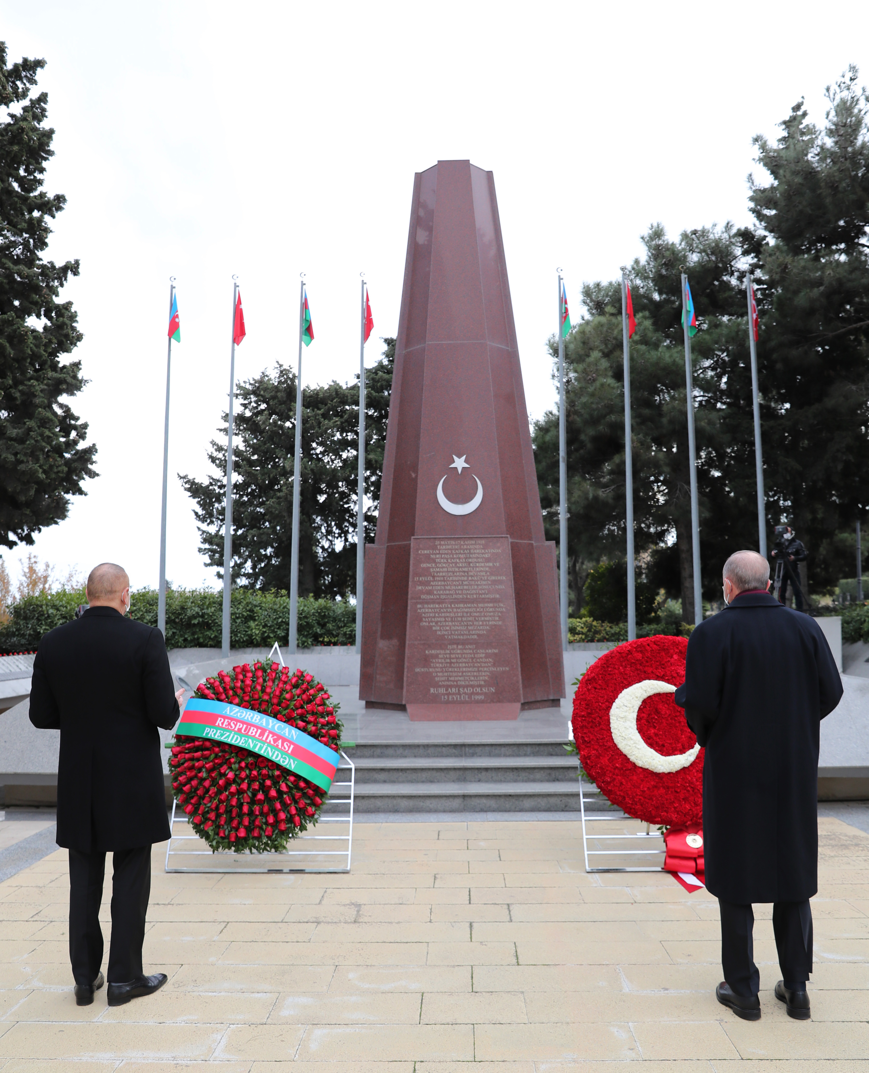 Haydar Aliyev'in anıt mezarına çelenk bırakan Cumhurbaşkanı Erdoğan ve Azerbaycan Cumhurbaşkanı Aliyev, daha sonra Bakü Şehitler Hıyabanı'nda Türk ve Azerbaycan şehitliklerine ziyarette bulundu.