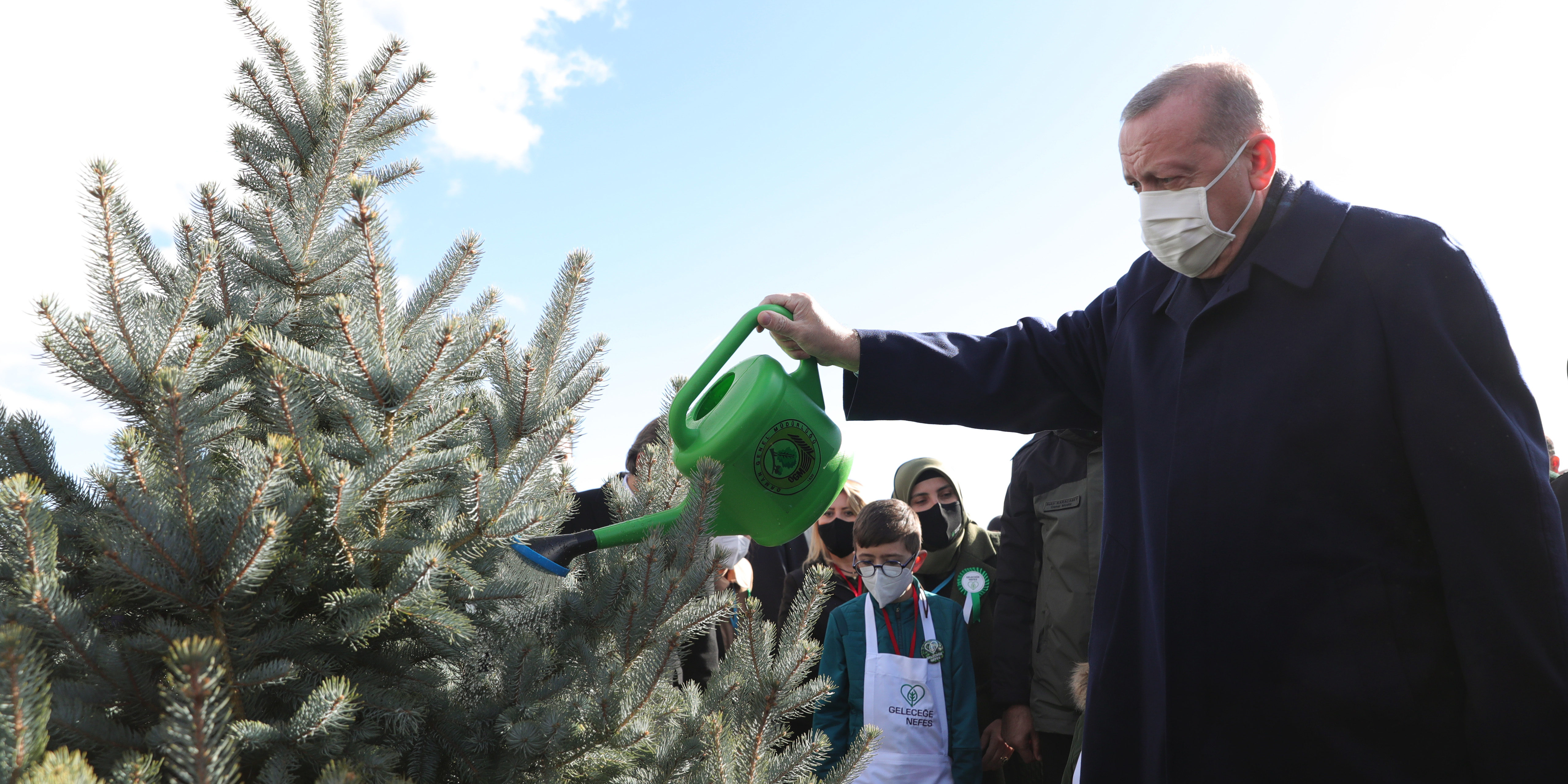 Cumhurbaşkanı Recep Tayyip Erdoğan, "Geleceğe Nefes, Dünyaya Nefes Programı"nda yaptığı konuşmada, Son 18 yılda 5,5 milyon hektara yakın alanda ağaçlandırma, erozyonla mücadele çalışması yaparak 5,1 milyar fidanı toprakla buluşturduk. Ormanlık alanların geliştirilmesi ile kalmadık. Okul, hastane, sağlık ocağı, ibadethane bahçeleri, mezarlıklar, kara yolu ve köy yolu kenarlarını da ağaçlandırdık. Sadece bu alanlara 32 milyondan fazla fidan diktik. Hedefimiz 2023 yılı sonuna kadar toplamda 7 milyar fidanın toprakla buluşmasını sağlamaktır." dedi.