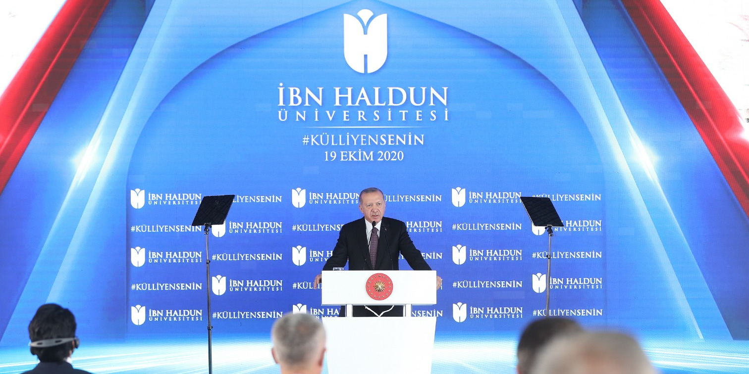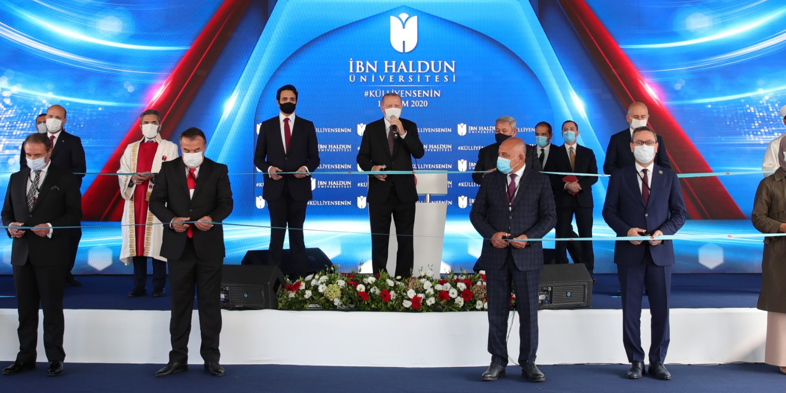 Cumhurbaşkanı Erdoğan, İbn Haldun Üniversitesini "bu hayali ete kemiğe büründürmenin ilk ve önemli adımlarından biri olarak gördüğünü" dile getirdi.