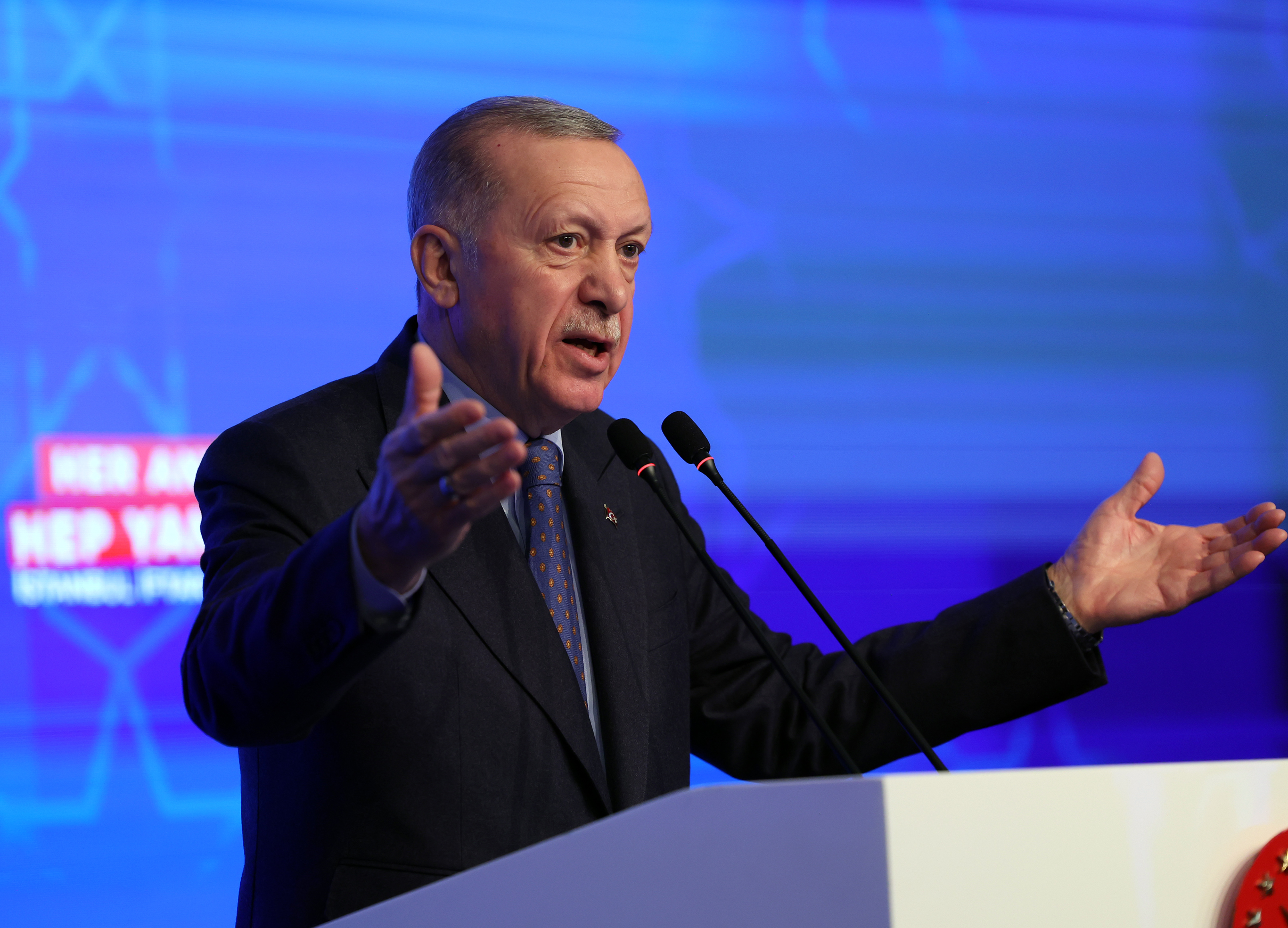 Cumhurbaşkanı Erdoğan, İstanbul'a aşık olduklarını vurgulayarak, "İşte şimdi de Cumhurbaşkanınız olarak şahsım, kabinem ve yerel yönetimlerden gelecek olan arkadaşlarımla başta İstanbul olmak üzere Ankara, Allah'ın izniyle İzmir'i de, biz İzmirli kardeşlerimden istedik. Buraları da bu heyete katmak suretiyle Türkiye'ye yeni bir heyecan getirmek istiyoruz. Ve bunu başaracağız. Rabbim yolumuzu, bahtımızı açık etsin diyorum." dedi.