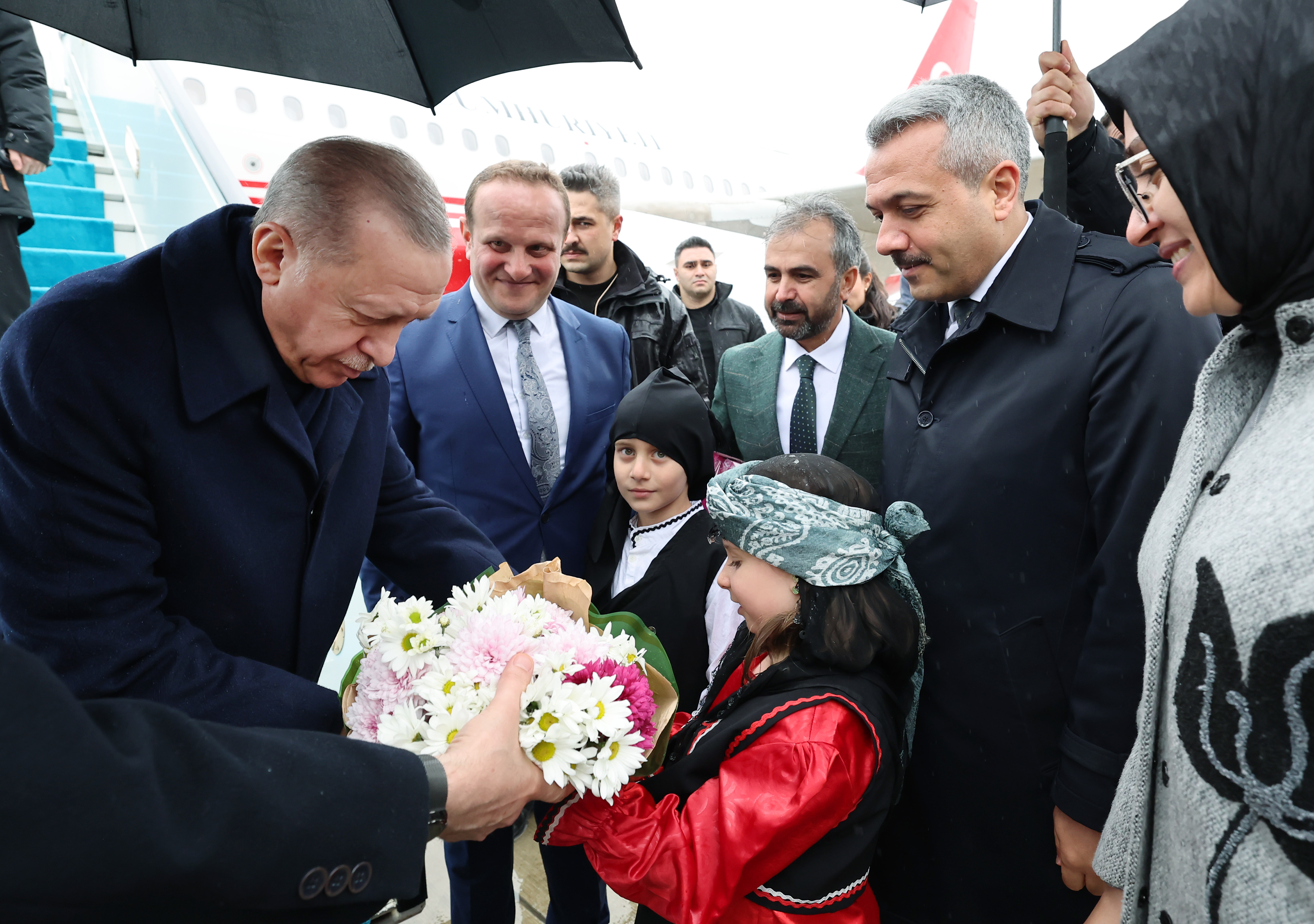 Karşısında Karadeniz misali kabına sığmayan, bendini yıkmaya hazır bir Rize gördüğünü söyleyen Cumhurbaşkanı Erdoğan, "Dereler dize gelir, dökülür bize gelir. Gönlümün bahçesinde birinci Rize gelir. Derelerin derdini balıktan sor balıktan. Rize'ye tutulmayan ne anlar sevdalıktan." dizelerini okudu.