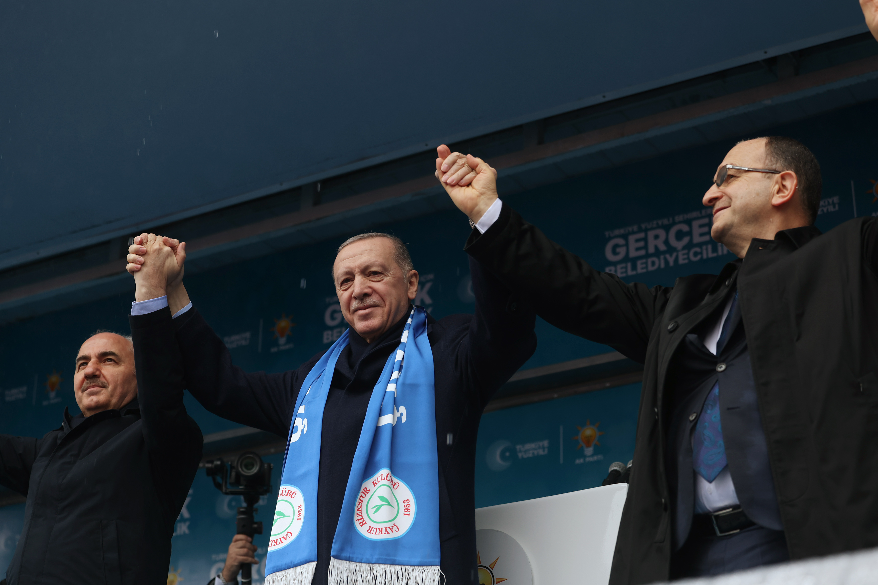 Alandakilere, "31 Mart'ta Türkiye Yüzyılı şehirleri için hazır mıyız? 31 Mart'ta Türkiye Yüzyılı şehirleri için kararlı mıyız? Bunun için seçim gününe kadar kapı kapı dolaşıyor muyuz? Büyük ve güçlü Türkiye vizyonuna sahip çıkıyor muyuz?" diye seslenen Cumhurbaşkanı Erdoğan, "Evet" yanıtı üzerine "Ben size inanıyorum, siz de bu kardeşinize inanıyor musunuz? Mesele yok. Allah, yol arkadaşlığımızı muvaffak eylesin. 31 Mart seçimleri zaferimiz şimdiden ülkemiz ve Rize'miz için hayırlı olsun." diye konuştu.