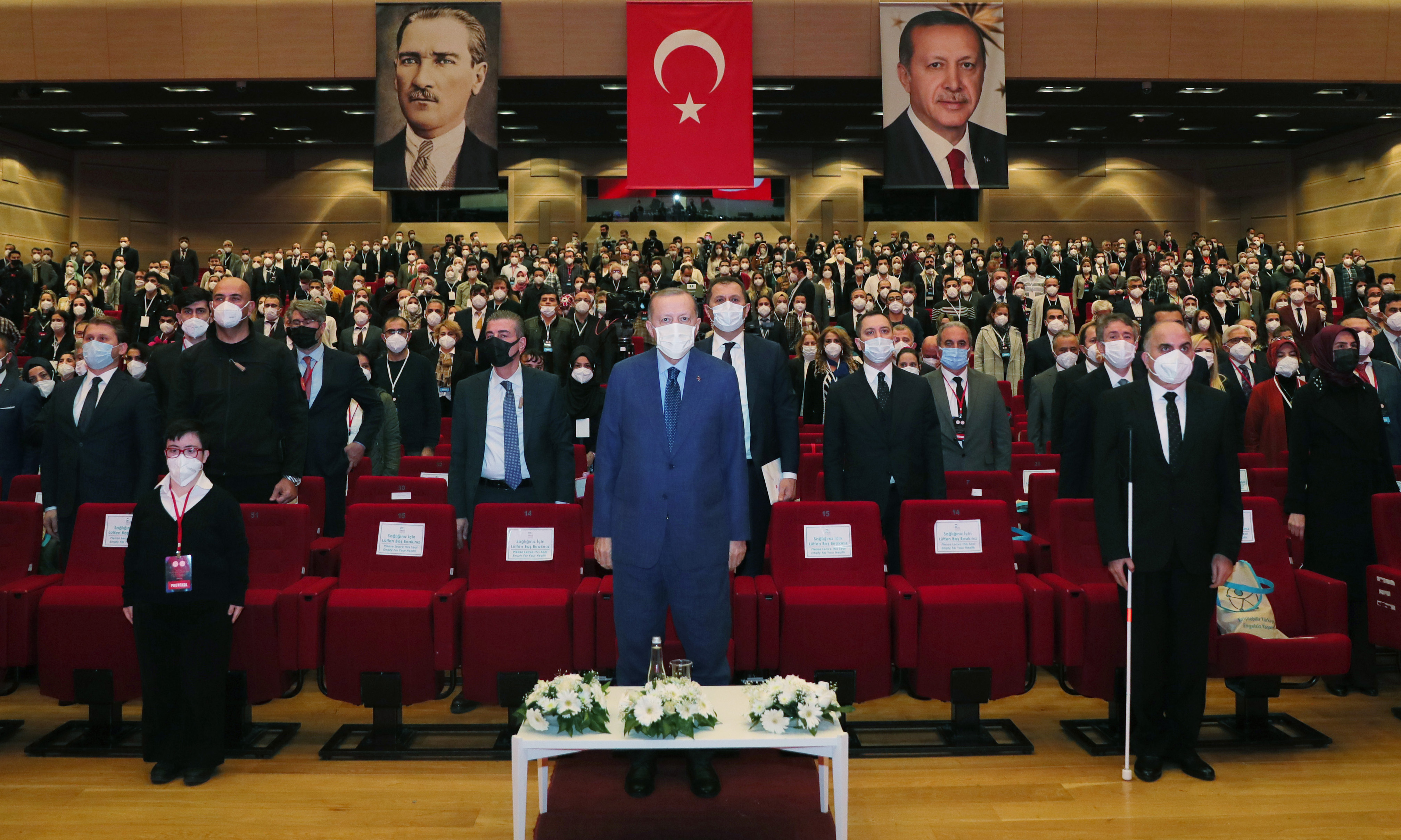 Cumhurbaşkanı Erdoğan, değişen şartlara ve ortaya çıkan yeni ihtiyaçlara göre engellilere yönelik politikaları güncellediklerini, engellilerle ilgili meselelerde takip eden yerine takip edilen, referans alınan bir konumda olmak istediklerini vurgulayarak, "Sadece küresel koronavirüs salgını sürecinde yaşananlar bile tek başına Türkiye'nin sağlık altyapısı ile beraber sosyal güvenlik sisteminin de gücünü göstermiştir. Yine bu döneminde milletimizin insani hasletleri, paylaşmayı, dayanışmayı, merhameti esas alan medeniyet değerleri ön plana çıkmıştır. Şimdi bunu her alanda daha ileriye taşımanın mücadelesini veriyoruz." değerlendirmesini yaptı.