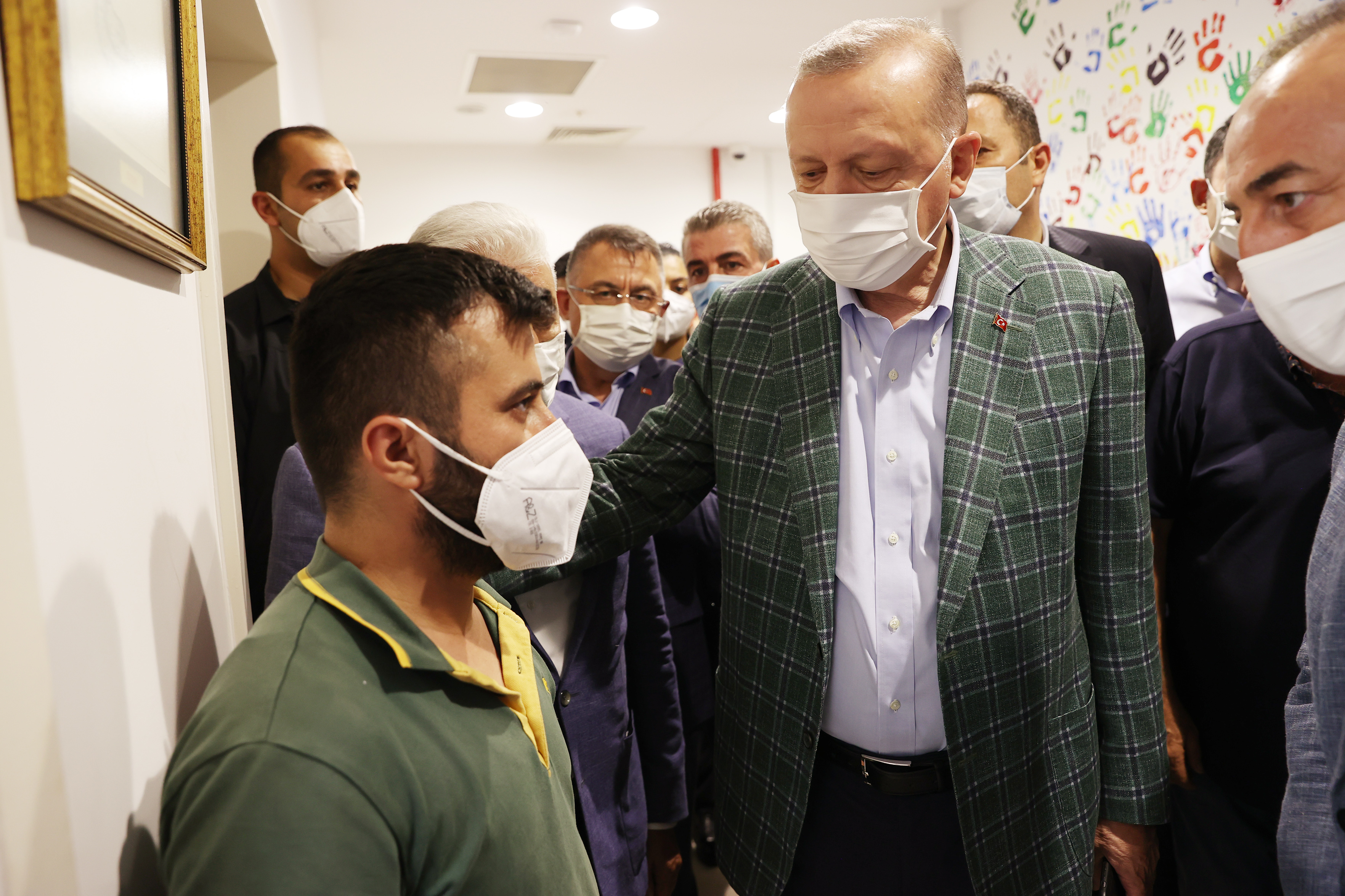 Cumhurbaşkanı Erdoğan konuşmasının ardından çıkışta yardım gönüllüleri ve izcilerle selamlaştı, bir süre sohbet etti.