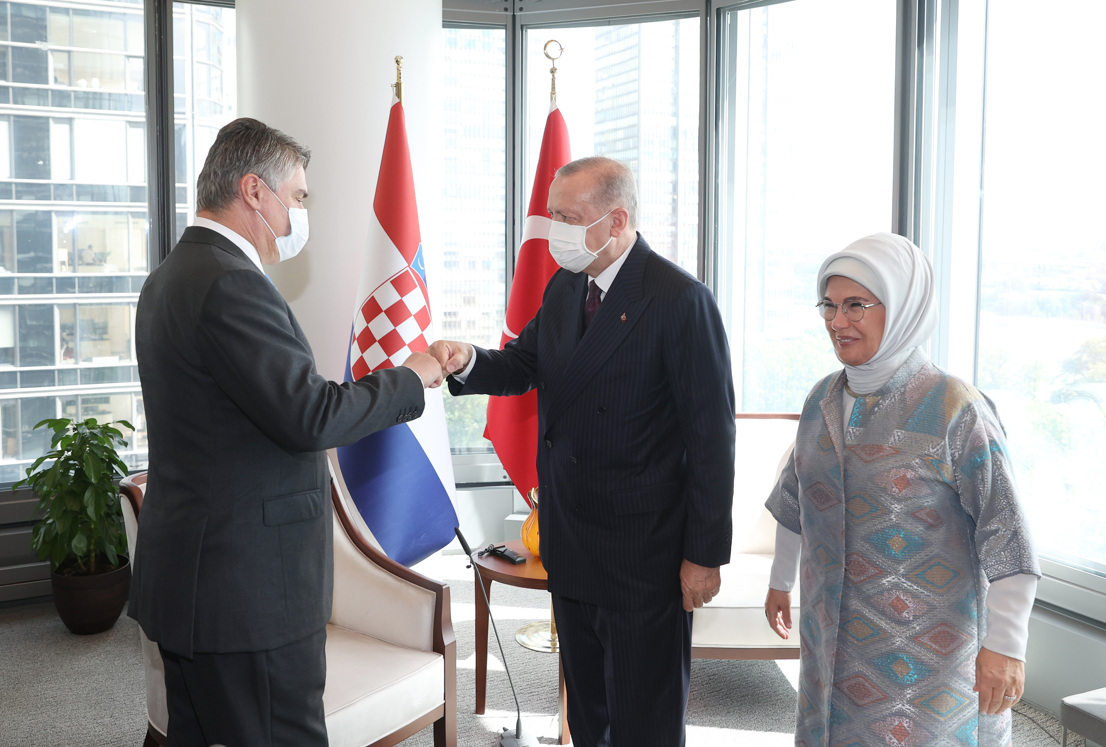 Birleşmiş Milletler 76. Genel Kurulu'na katılmak üzere New York'ta bulunan Cumhurbaşkanı Recep Tayyip Erdoğan, Hırvatistan Cumhurbaşkanı Zoran Milanoviç ile bir araya geldi.