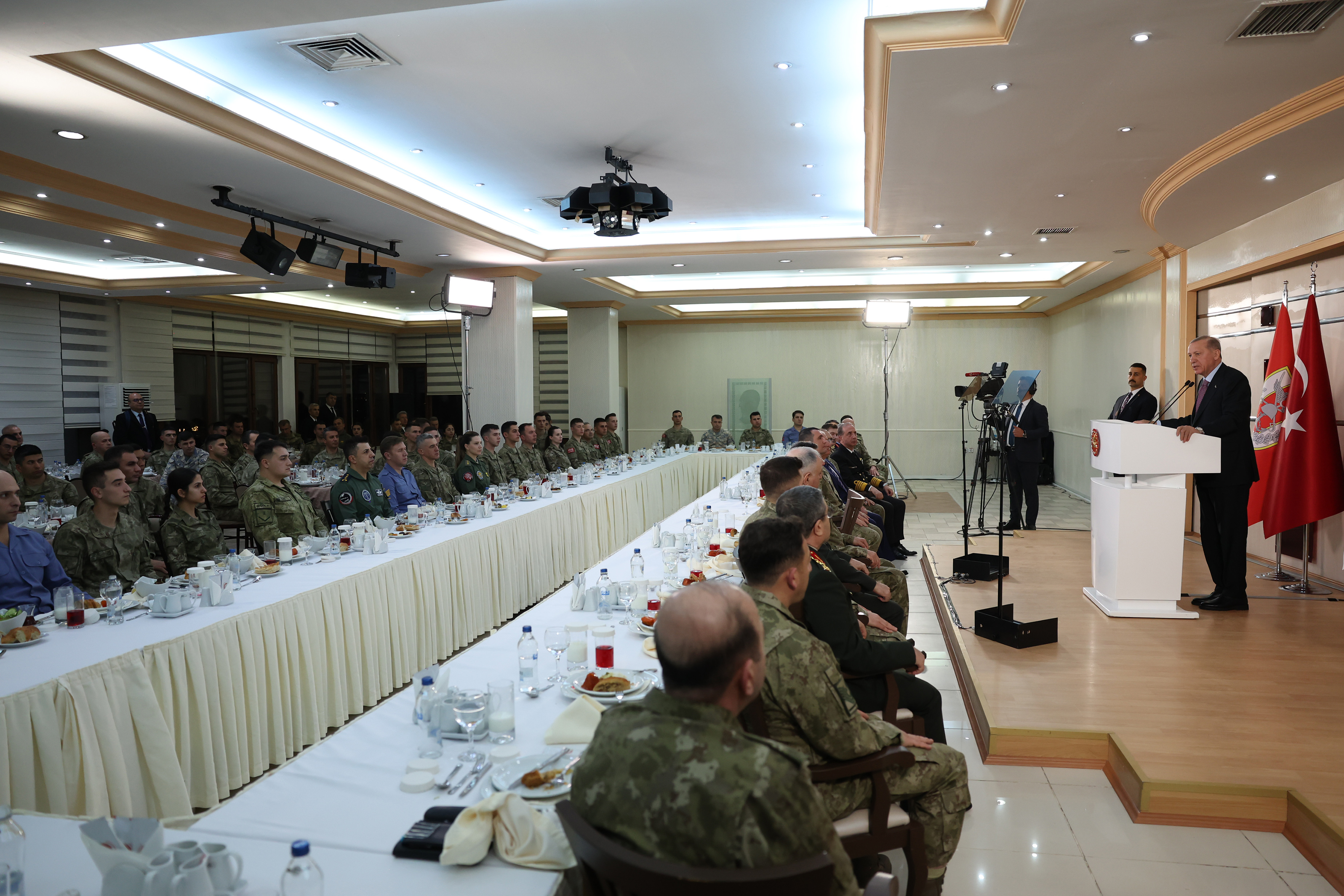 Bölgemizde terörün olmadığı bir iklimi tesis etmeyi sadece şehitlerimize değil aynı zamanda gelecek nesillere yönelik bir borç olarak görüyoruz. Rabb'im yar ve yardımcımız olsun. Askerlik mesleğini seçerek bu kutlu yola yöneldiğiniz için sizleri tebrik ediyorum. Bir cennet bahçesine girercesine toprağa giren aziz şehitlerimizi şu mübarek ramazan akşamında rahmetle yâd ediyor, gazilerimize sağlıklı ve huzurlu bir ömür diliyorum. Şahsım, ailem, tüm milletim adına hepinizi sevgiyle, saygıyla selamlıyorum."