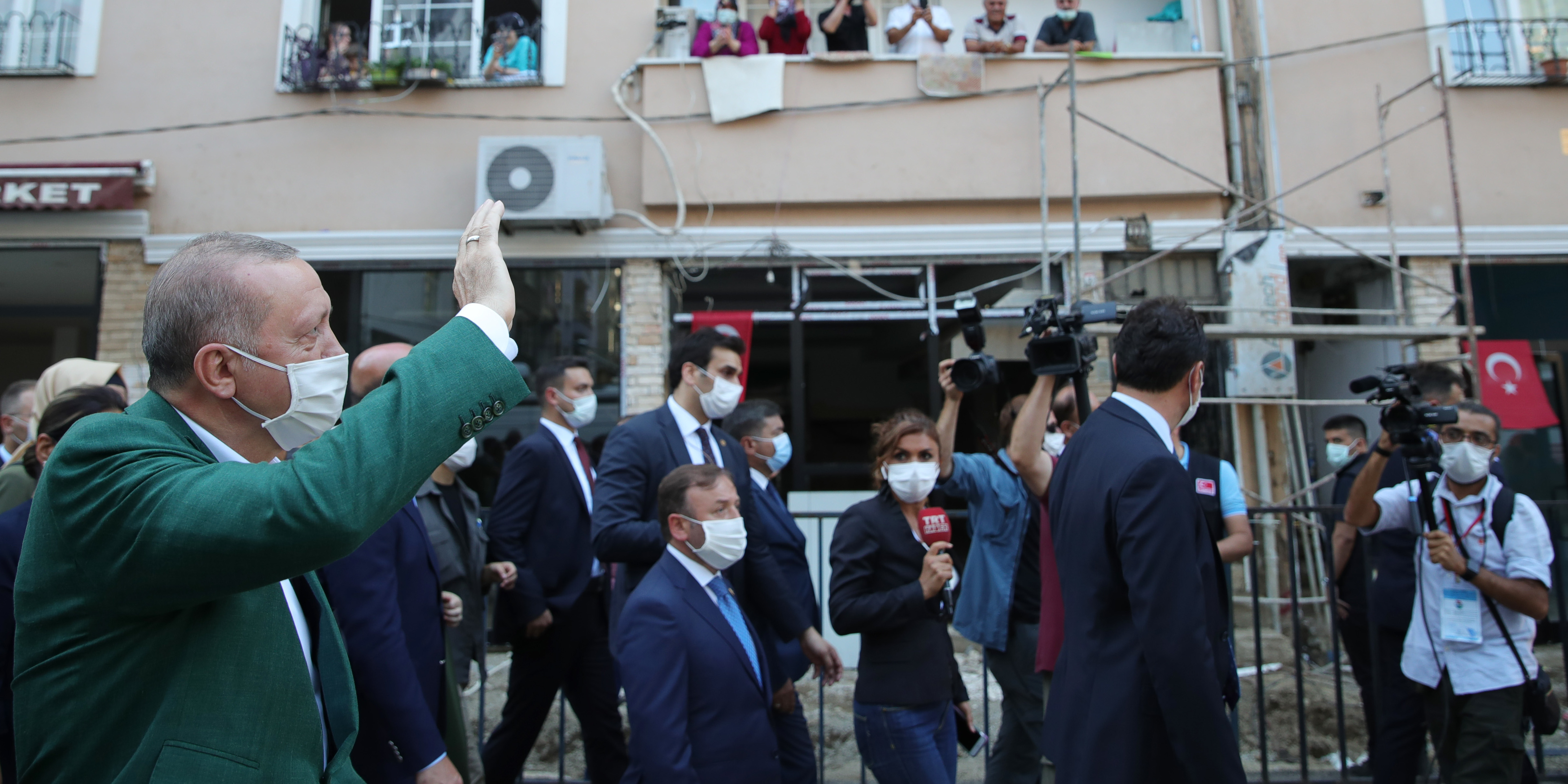 Erdoğan, Giresun'daki sel afetinden zarar gören ilçelerden Dereli'de belediye binası önünde halka hitap etti.