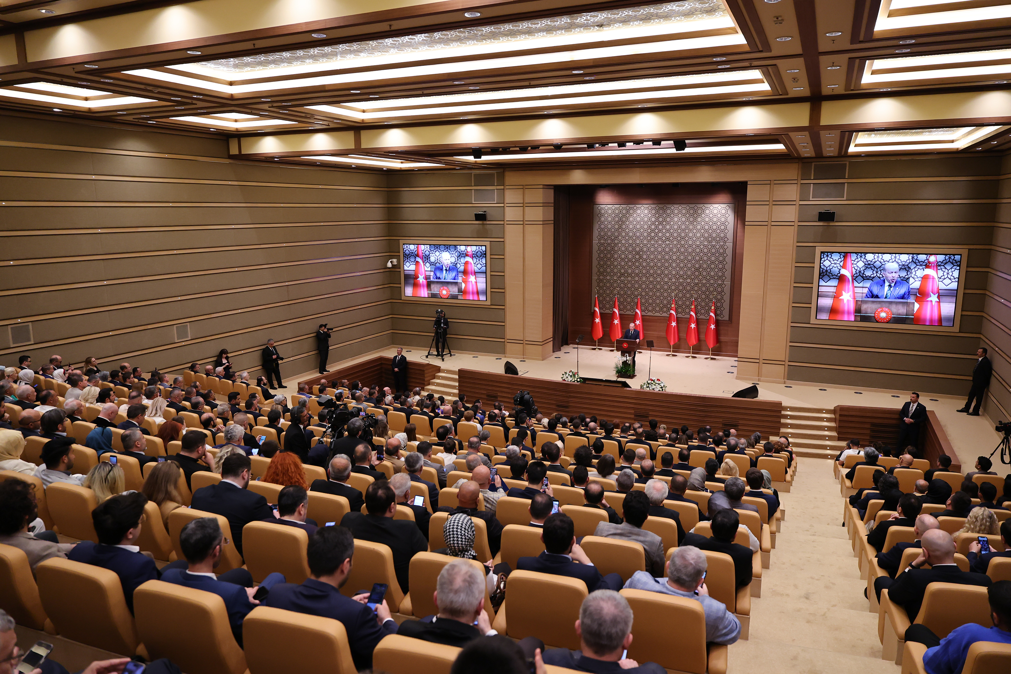 Cumhurbaşkanı Recep Tayyip Erdoğan, Cumhurbaşkanlığı Külliyesi'nde Anadolu Yayıncılar Federasyonu tarafından düzenlenen 8. Anadolu Medya Ödülleri törenine katıldı.