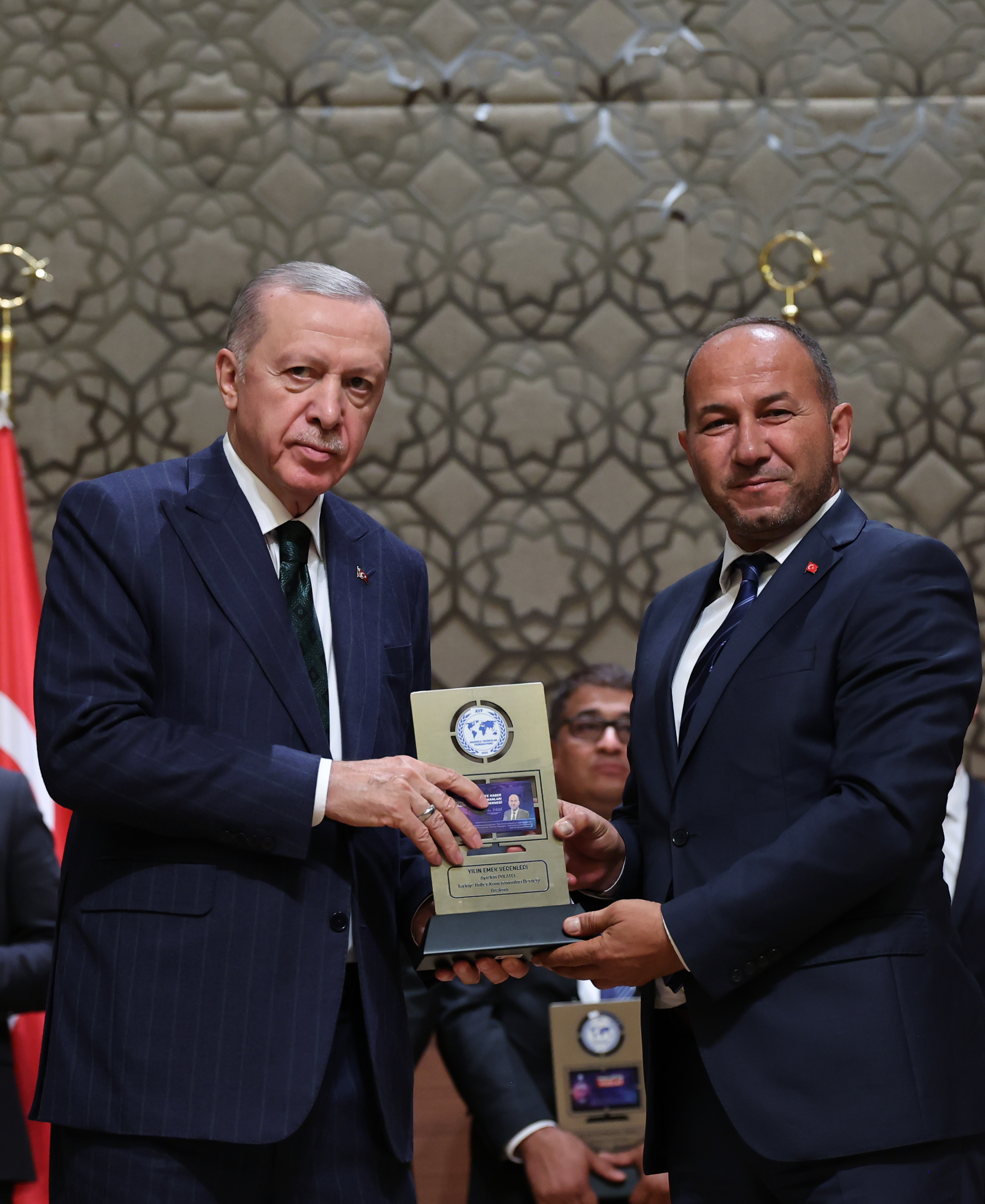 Medya mensuplarına ödülleri, Cumhurbaşkanı Erdoğan tarafından verildi.