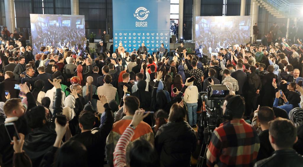 Cumhurbaşkanı Recep Tayyip Erdoğan, Bursa'daki açılış töreninin ardından "İlk Oyum AK Parti'ye, İlk Oyum Erdoğan'a" programında gençlerle buluştu.