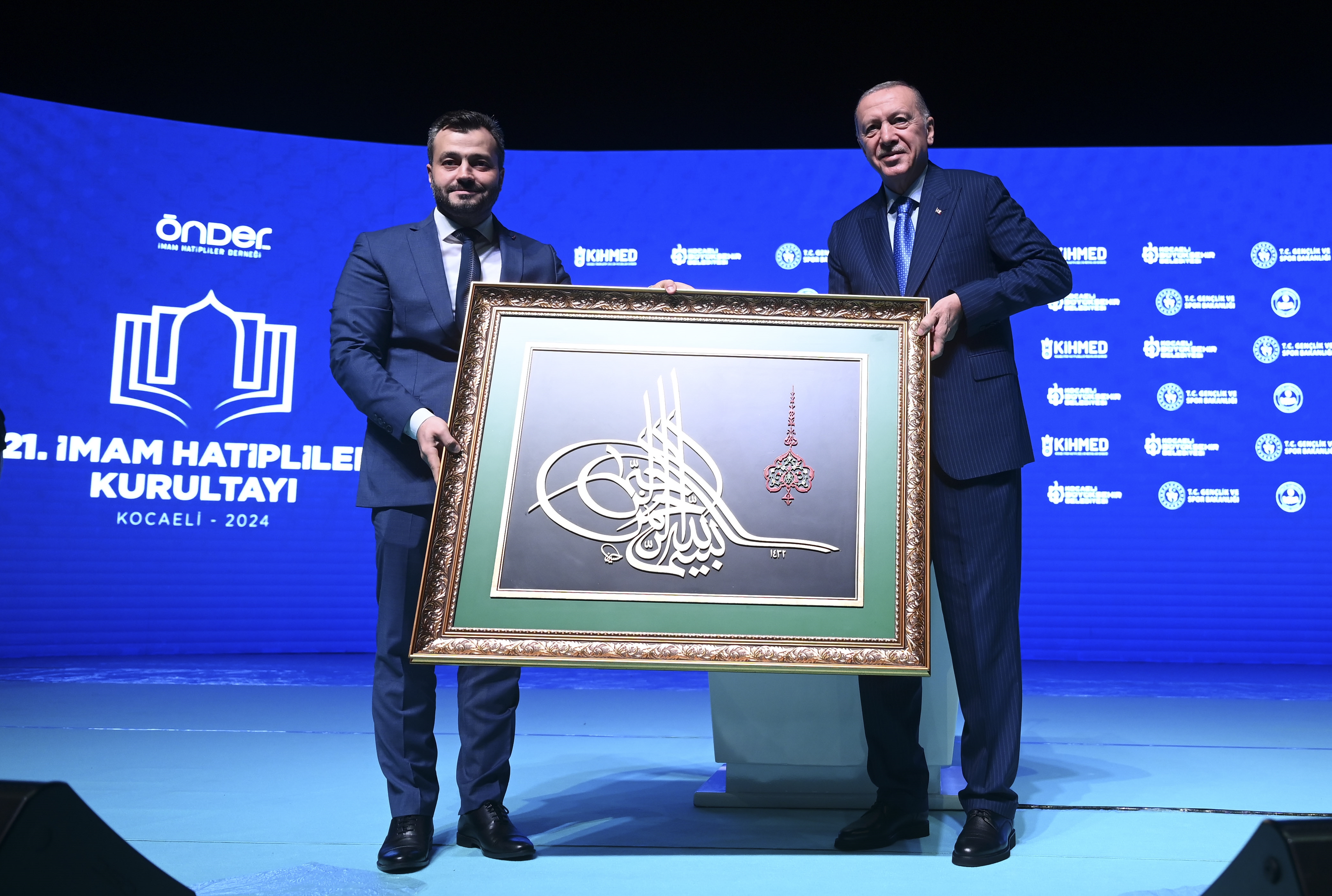Programda, ÖNDER Genel Başkanı Ceylan, Cumhurbaşkanı Erdoğan'a hat tablosu hediye etti.