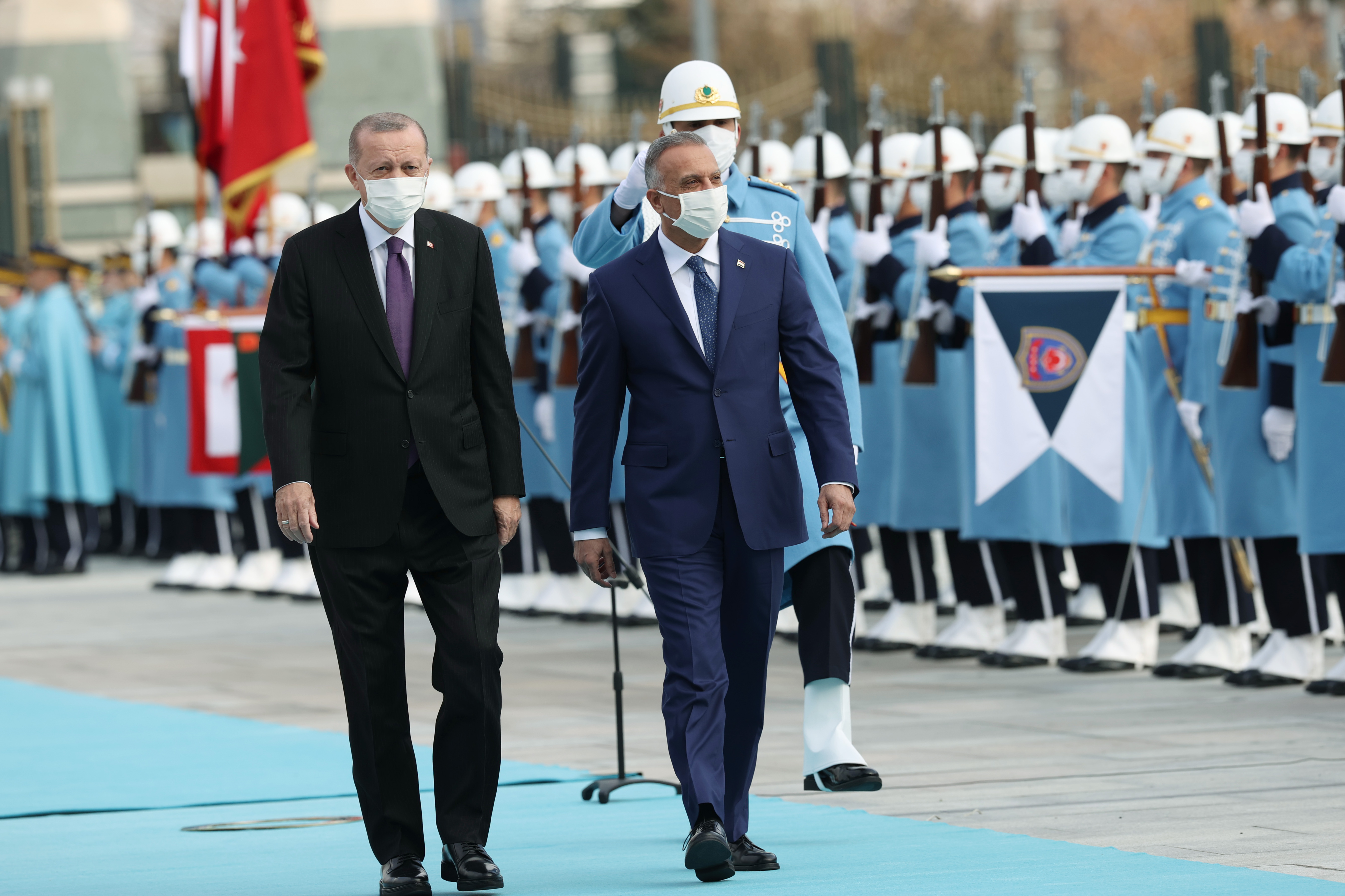 Cumhurbaşkanı Recep Tayyip Erdoğan, Irak Başbakanı Mustafa Kazımi'yi resmi törenle karşıladı.
