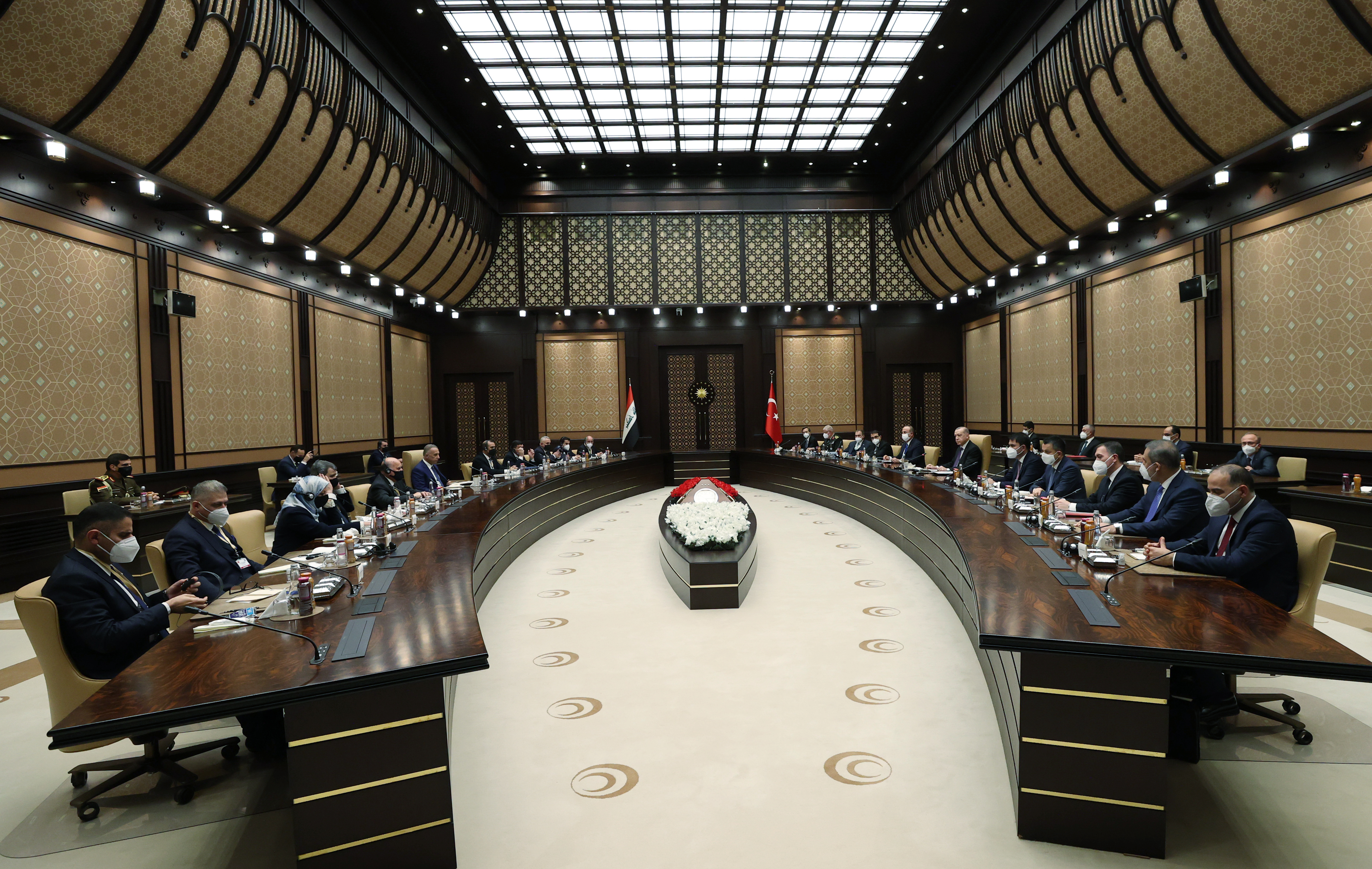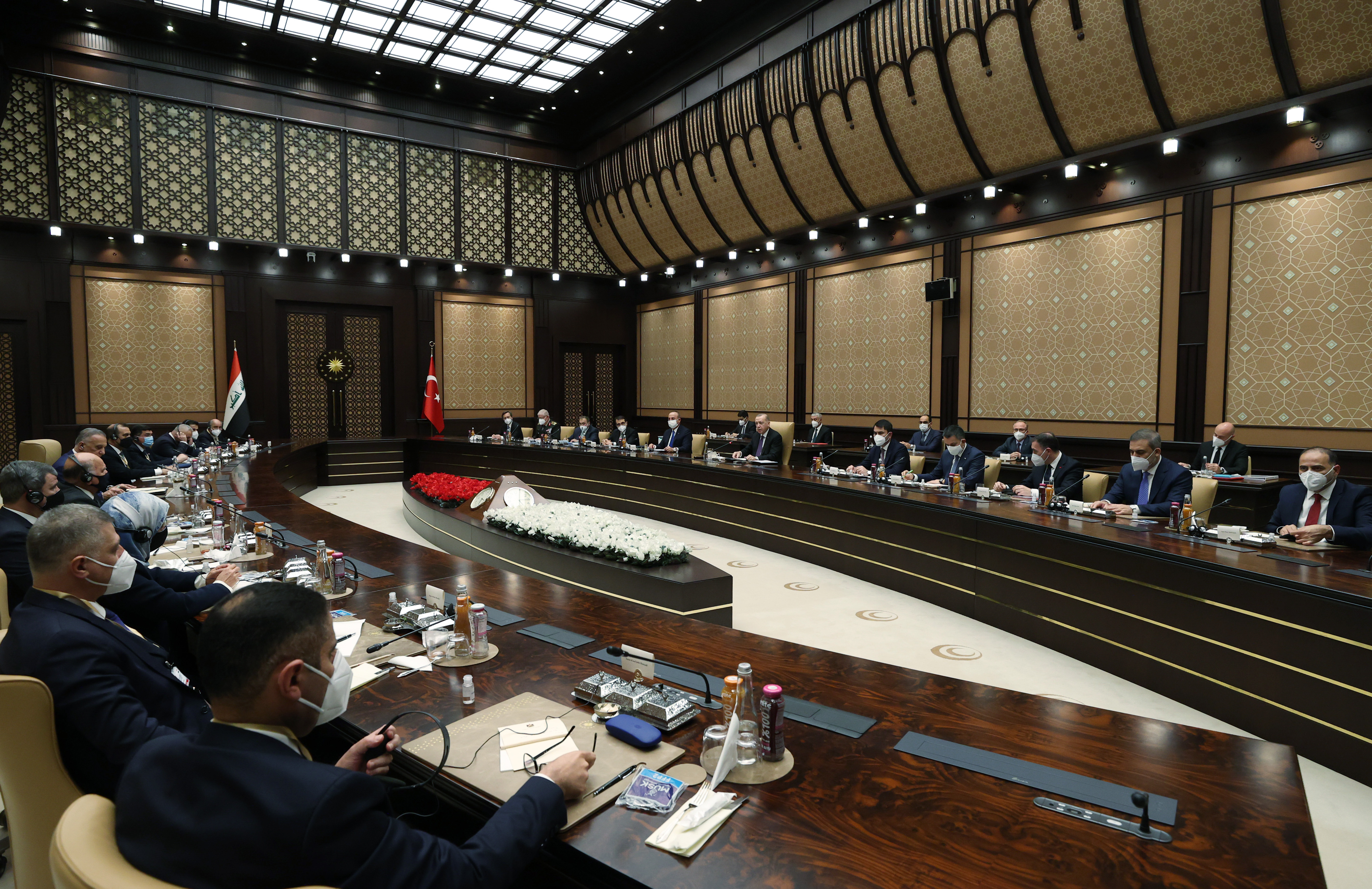 Cumhurbaşkanı Erdoğan ve Irak Başbakanı Kazımi, daha sonra baş başa görüşmeye geçti. Cumhurbaşkanı Erdoğan ve Irak Başbakanı Kazımi, baş başa görüşmelerinin ardından Türkiye ve Irak heyetleri arasında gerçekleştirilen heyetler arası görüşmelere başkanlık etti.