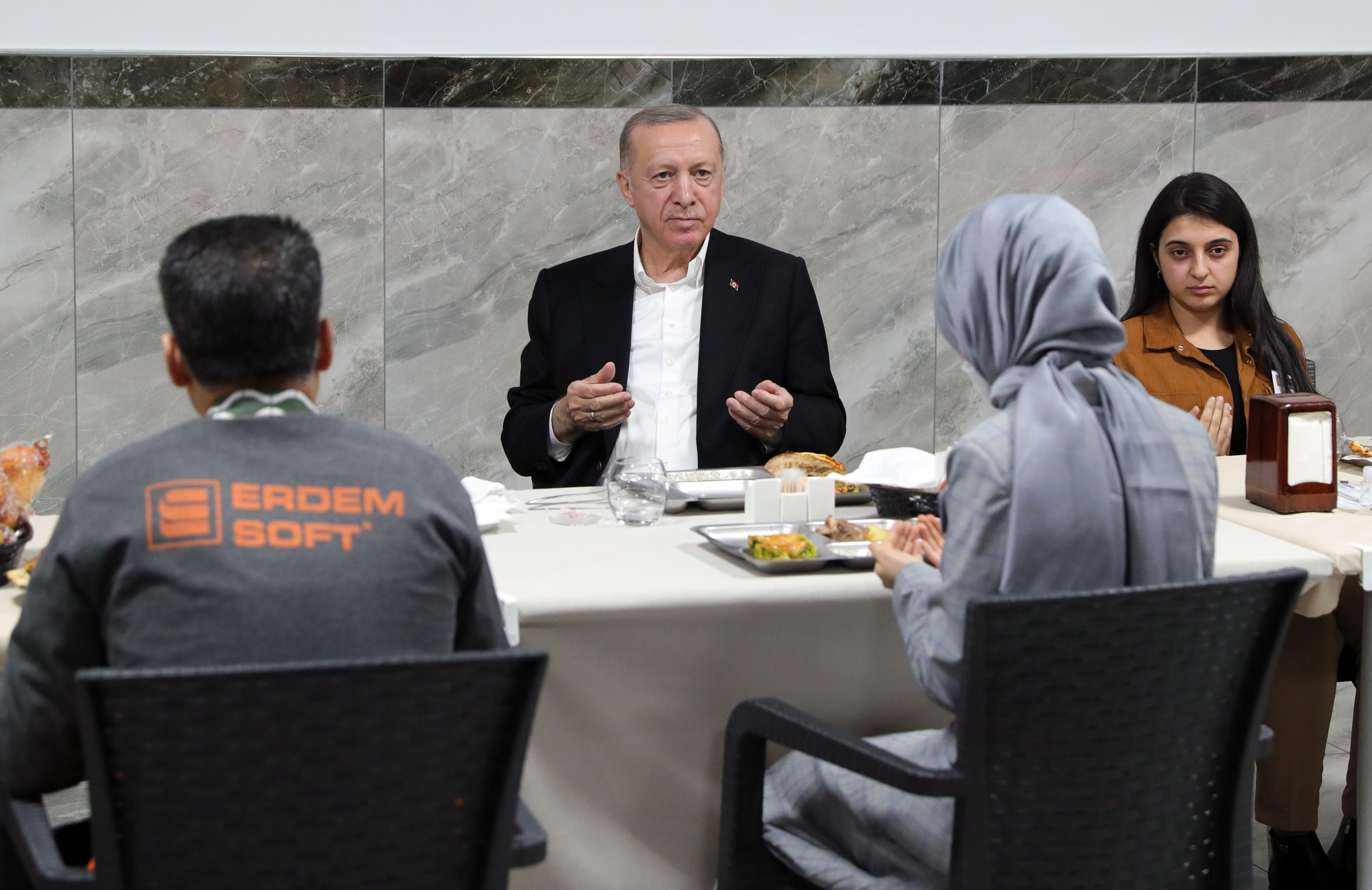 Cumhurbaşkanı Erdoğan, Erdem Soft Tekstil Fabrikası'nda işçilerle akşam yemeğinde bir araya geldi.