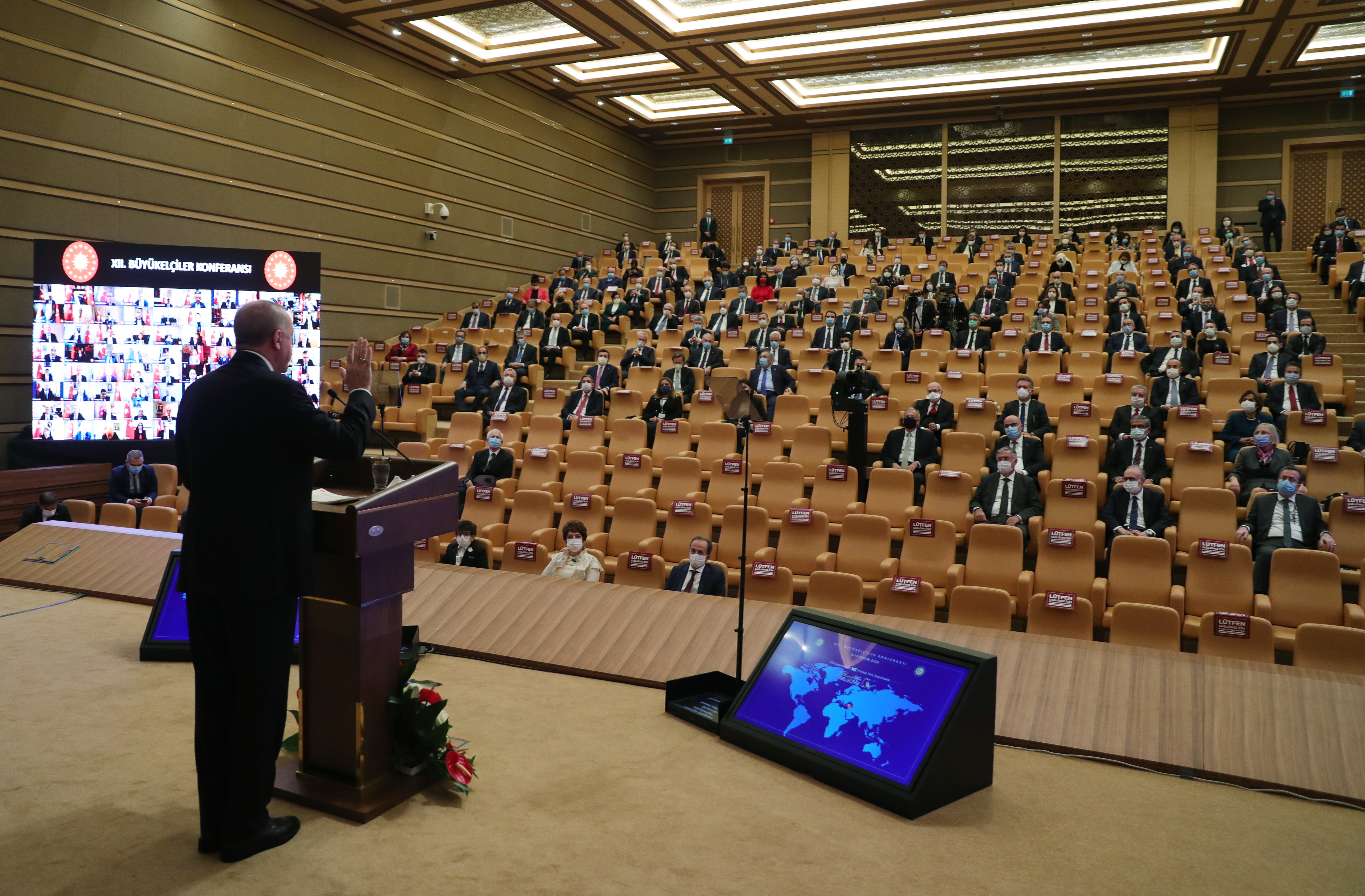 Cumhurbaşkanı Erdoğan, Cumhurbaşkanlığı Külliyesi'ndeki 12. Büyükelçiler Konferansı'nda katılımcılara hitap etti.