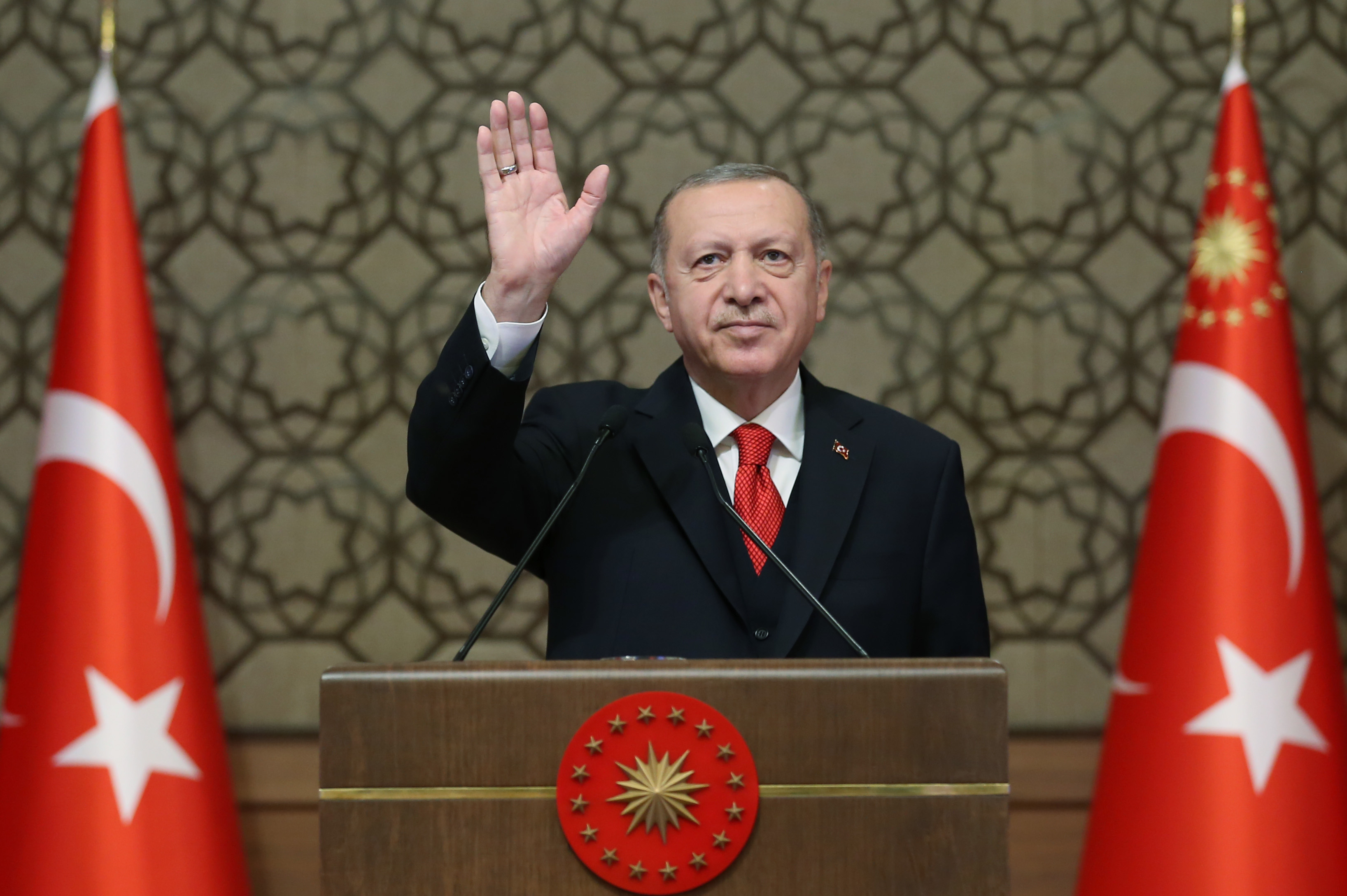 Yeni tip koronavirüs (Kovid-19) salgını sebebiyle büyükelçileri bu sene Cumhurbaşkanlığı Külliyesi'nde istedikleri gibi ağırlayamadıklarını dile getiren Cumhurbaşkanı Erdoğan, çevrimiçi de olsa bir araya gelmeyi, hasbihal etmeyi, yoğun dış politika gündemlerine dair değerlendirmelerde bulunmayı arzu ettiklerini söyledi.