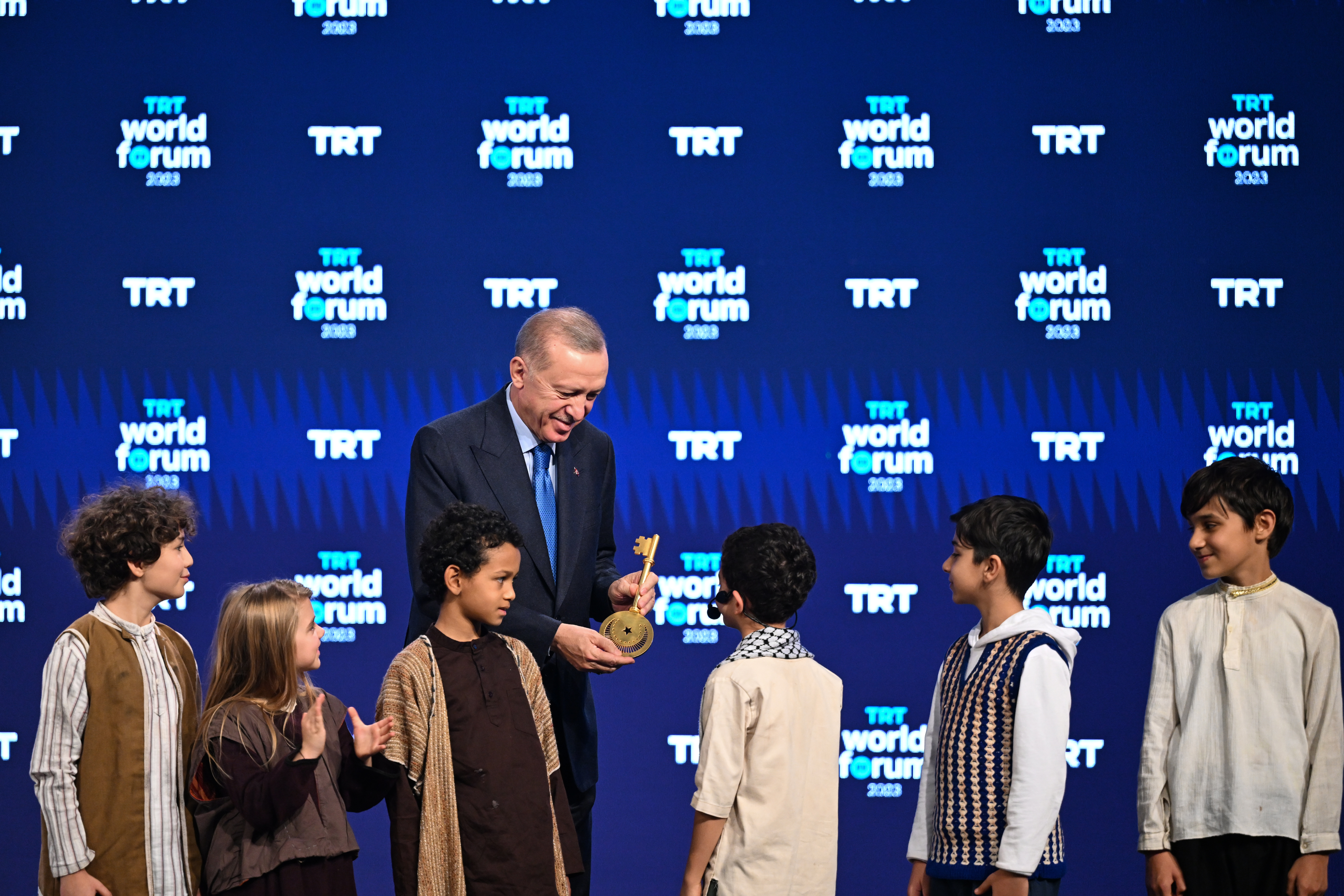Çocuklar, Cumhurbaşkanı Erdoğan'a "dünyadaki barışın anahtarı"nı teslim etti