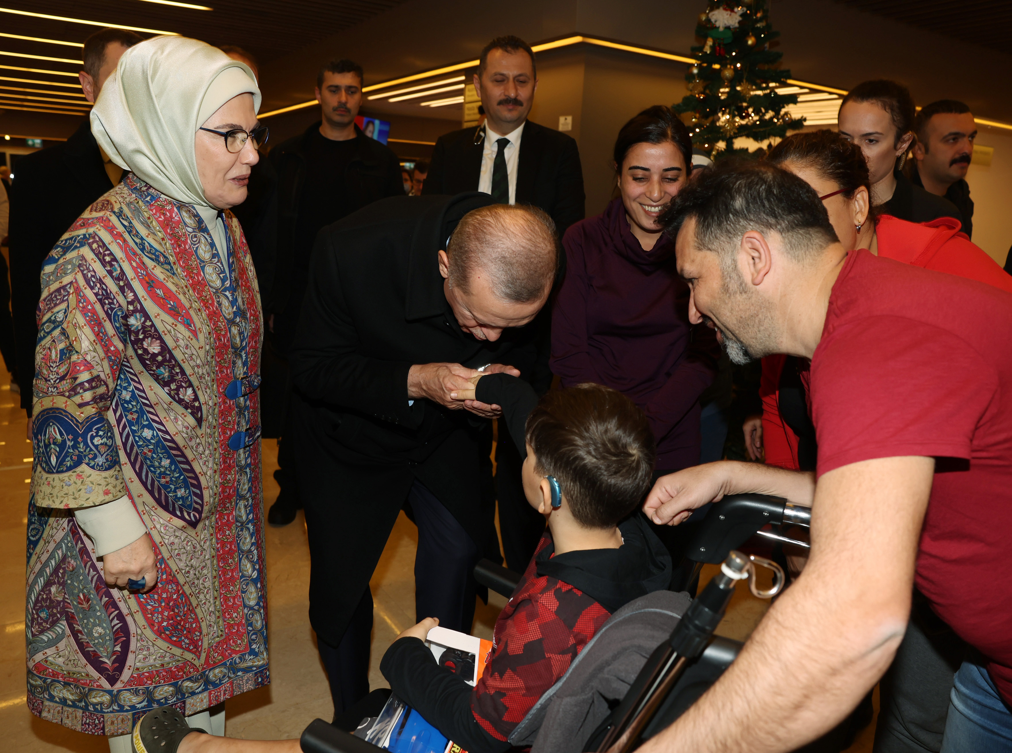 Hastanede hasta ziyaretinde bulunan ve hasta yakınlarıyla sohbet eden Cumhurbaşkanı Erdoğan ve eşi Emine Erdoğan, vatandaşlarla ve hastane personeliyle fotoğraf çektirdi.