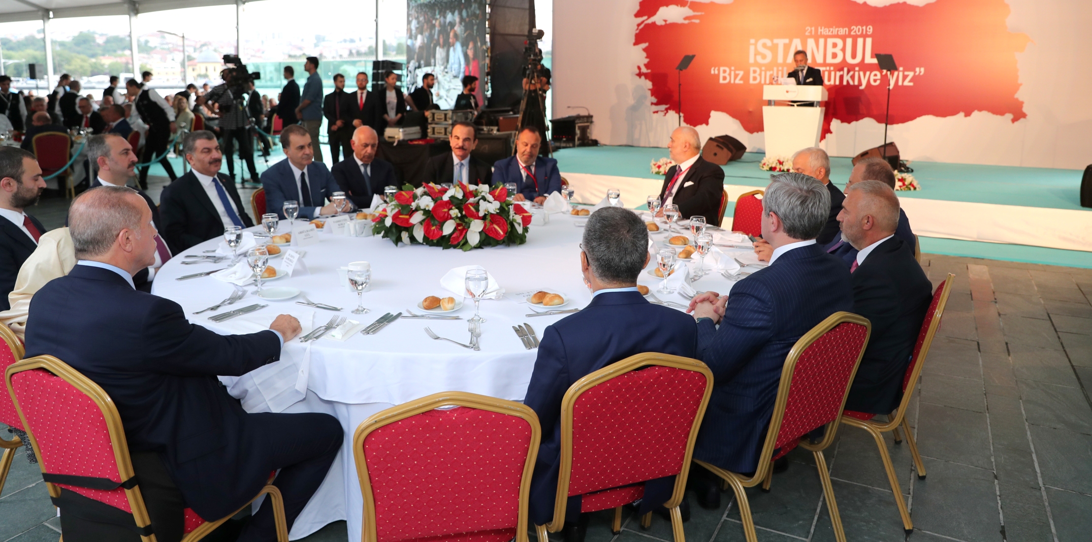 Cumhurbaşkanı Recep Tayyip Erdoğan, "İstanbul Biz Birlikte Türkiye'yiz" mottosuyla Haliç Kongre Merkezi'nde düzenlenen programda, iş insanlarıyla bir araya geldi.