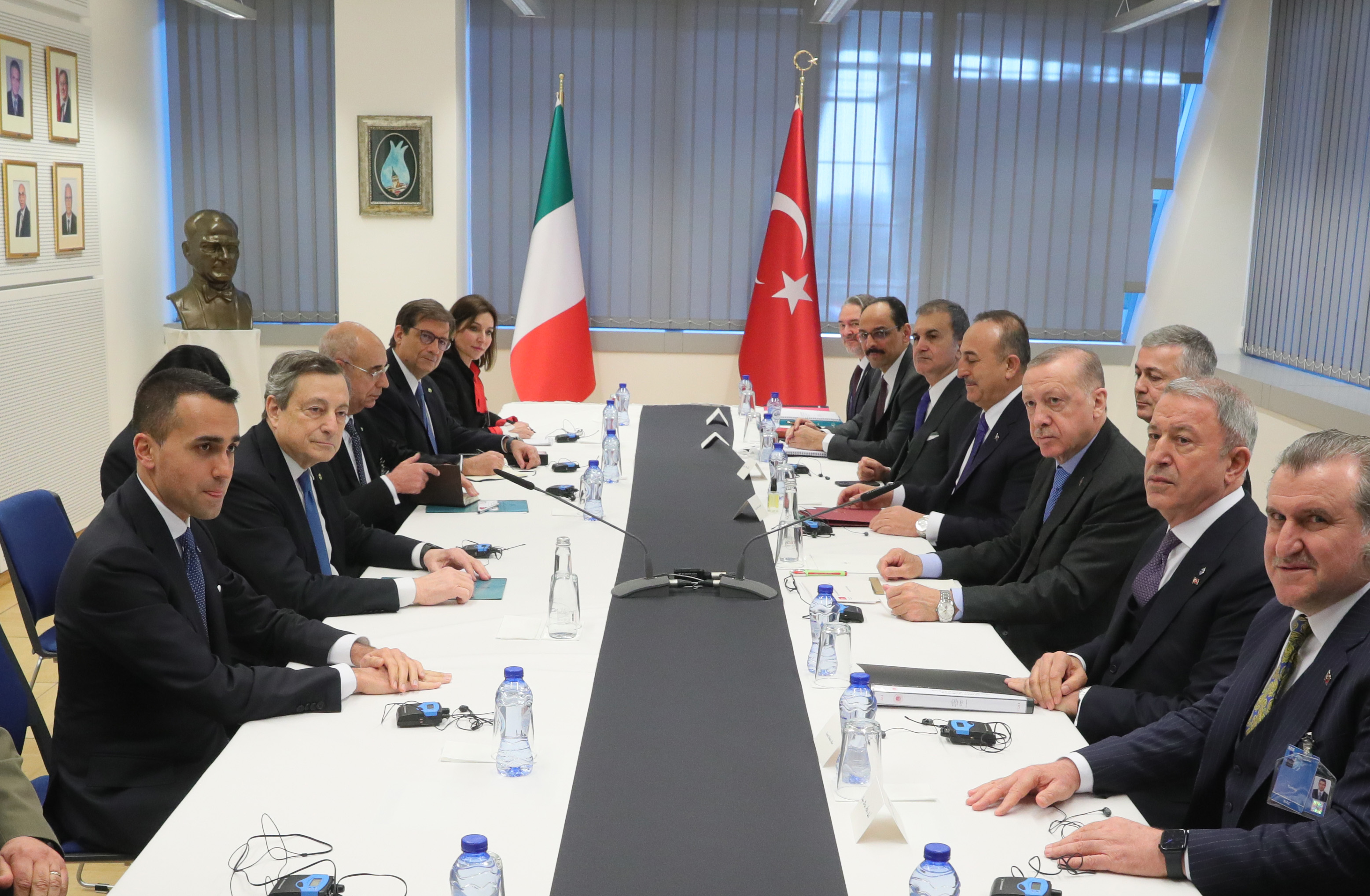 Cumhurbaşkanı Recep Tayyip Erdoğan, NATO Olağanüstü Devlet ve Hükûmet Başkanları Zirvesi kapsamında, İtalya Başbakanı Mario Draghi ile bir araya geldi.
