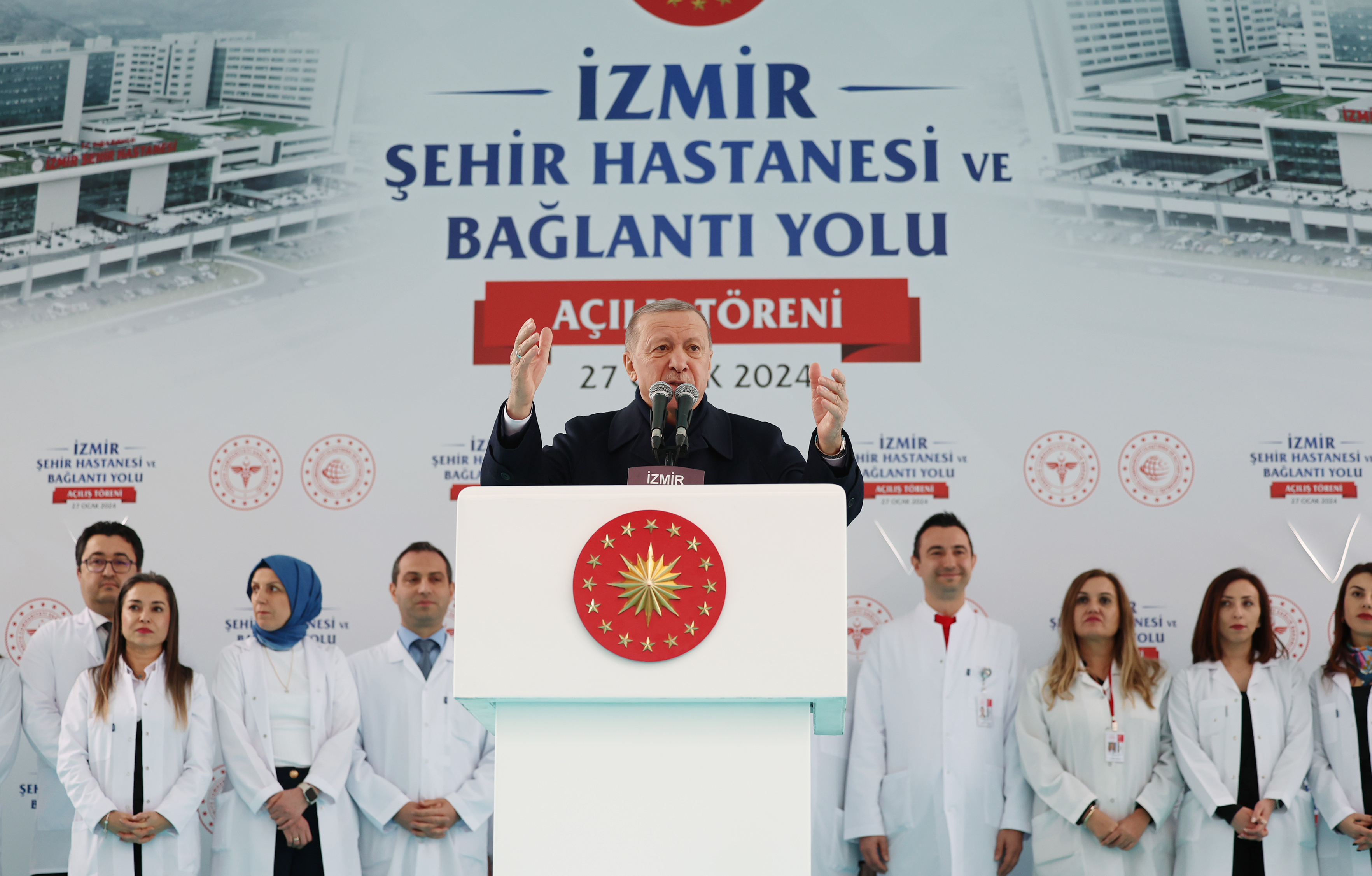 Cumhurbaşkanı Recep Tayyip Erdoğan, İzmir Bayraklı Şehir Hastanesi’nin açılışında yaptığı konuşmada, 2060 yataklı şehir hastanesinin ve bağlantı yollarının hayırlı olmasını diledi.